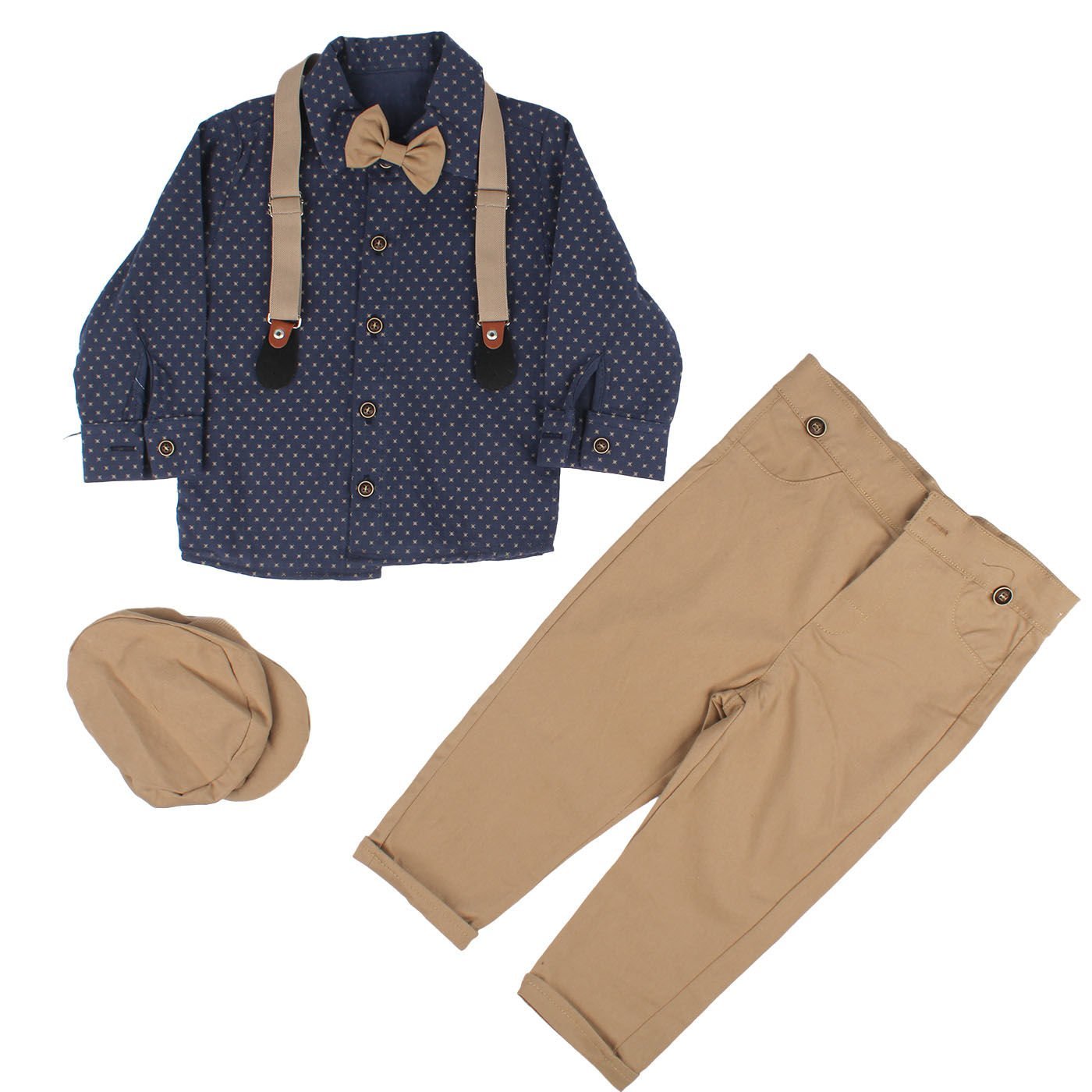 Bu şık bebek takımı, küçük prensler için mükemmel bir seçenektir. Kahve puanlı papyonu ve şapkasıyla tamamlayıcı bir görünüme sahiptir. Yumuşak dokusu ve rahat kesimi ile bebeğinizi mutlu edecek bir seçenektir. Özel günlerde ve özel anlarda kullanabileceğiniz şık bir takımdır.