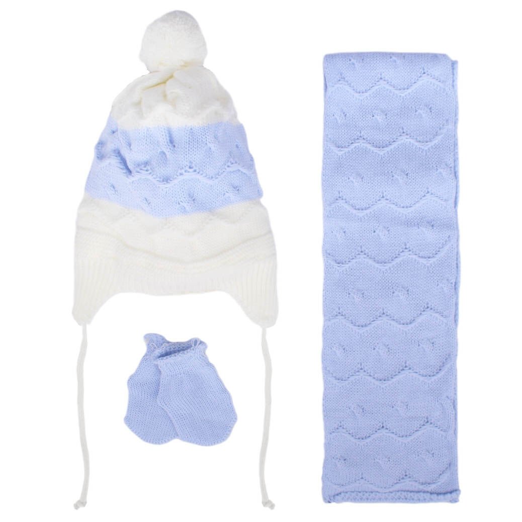 Erkek Bebek Mavi Beyaz Dalga Desenli Triko Atkı Bere Set