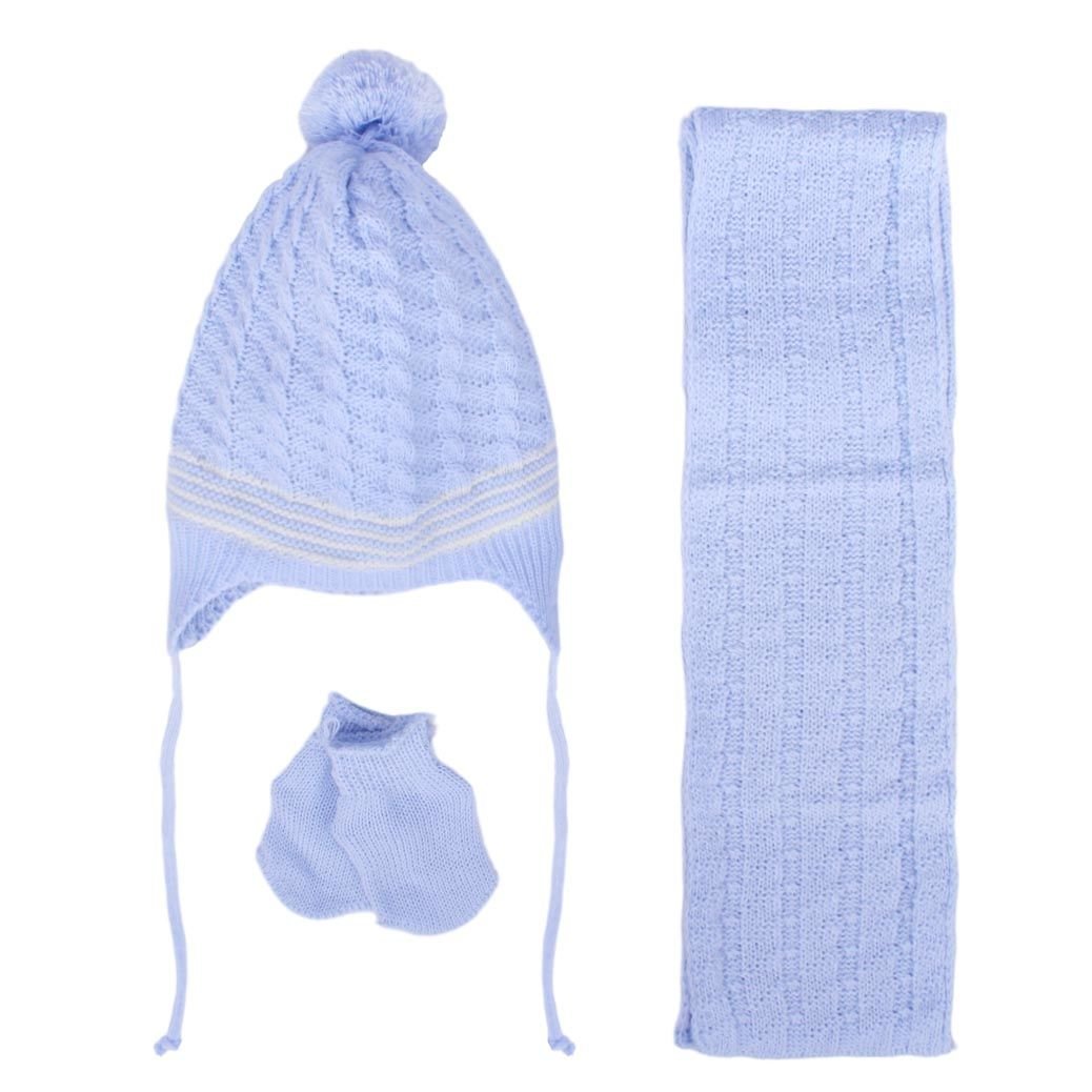 Erkek Bebek Mavi Beyaz Saç Örgü Desenli Triko Atkı Bere Set