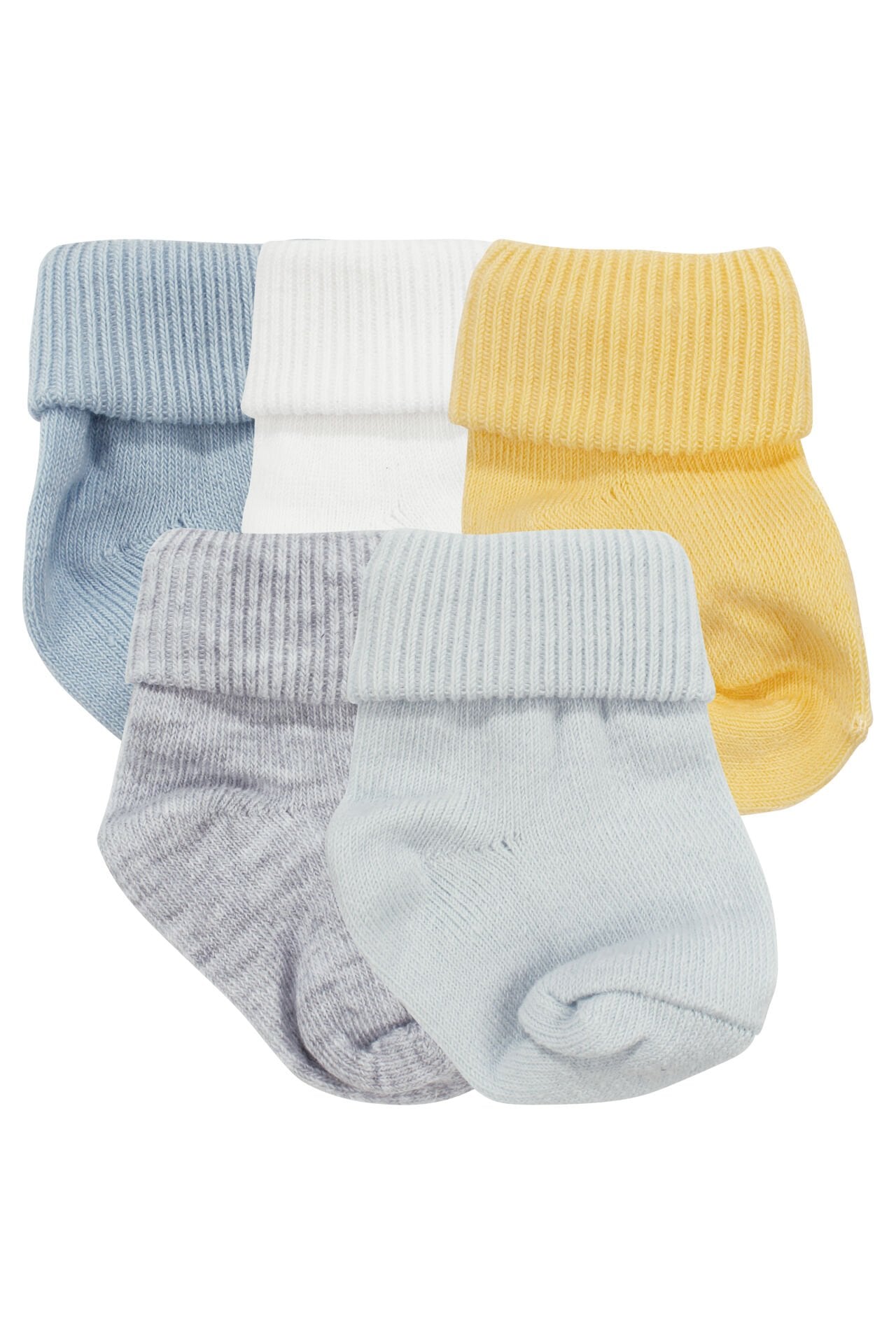 Erkek Bebek Mavi Beyaz Sarı Gri 5'li Çorap Set 0-6 Ay
