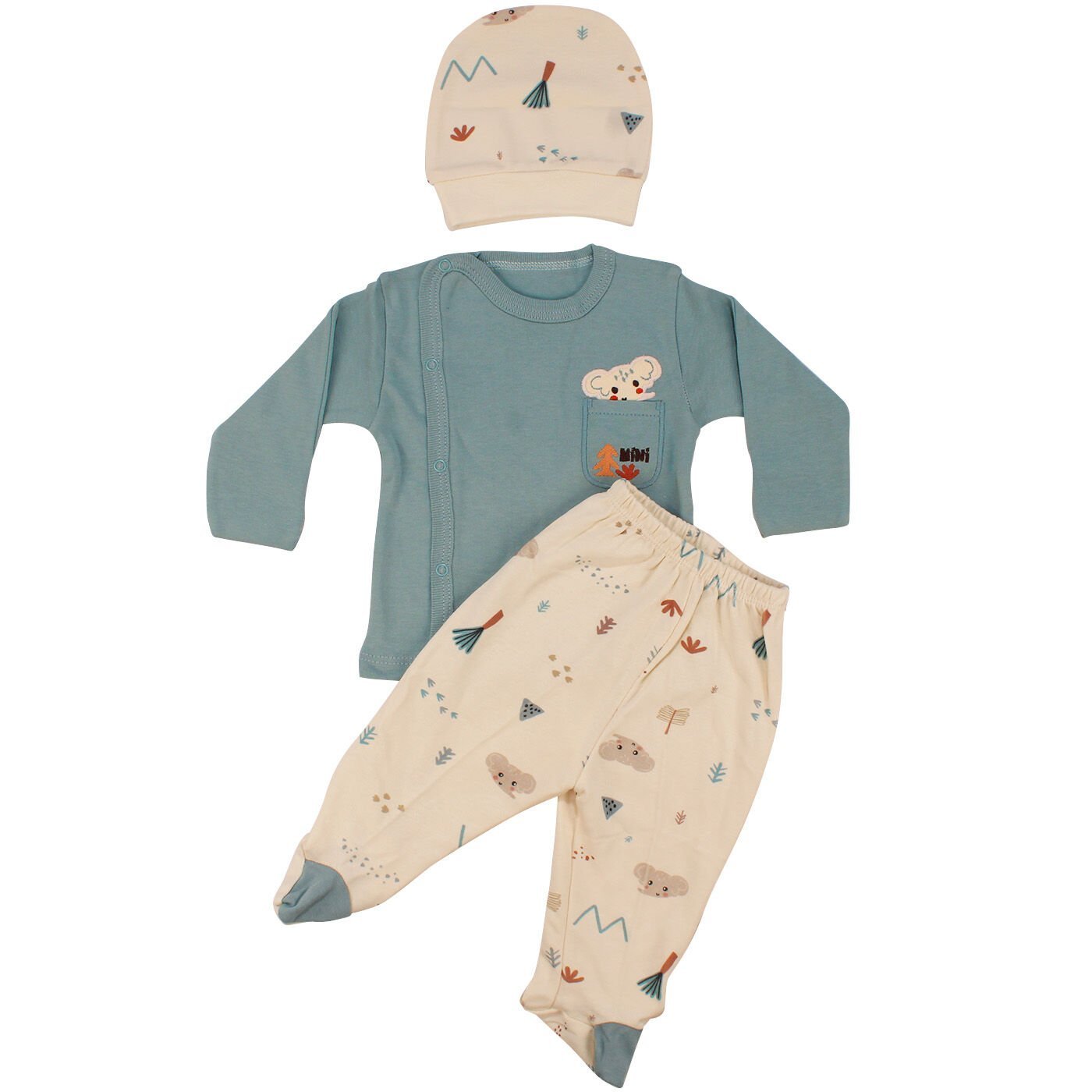 Erkek Bebek Mavi Ekru Fil Nakışlı Çıtçıtlı Pijama Takımı 0-3 Ay