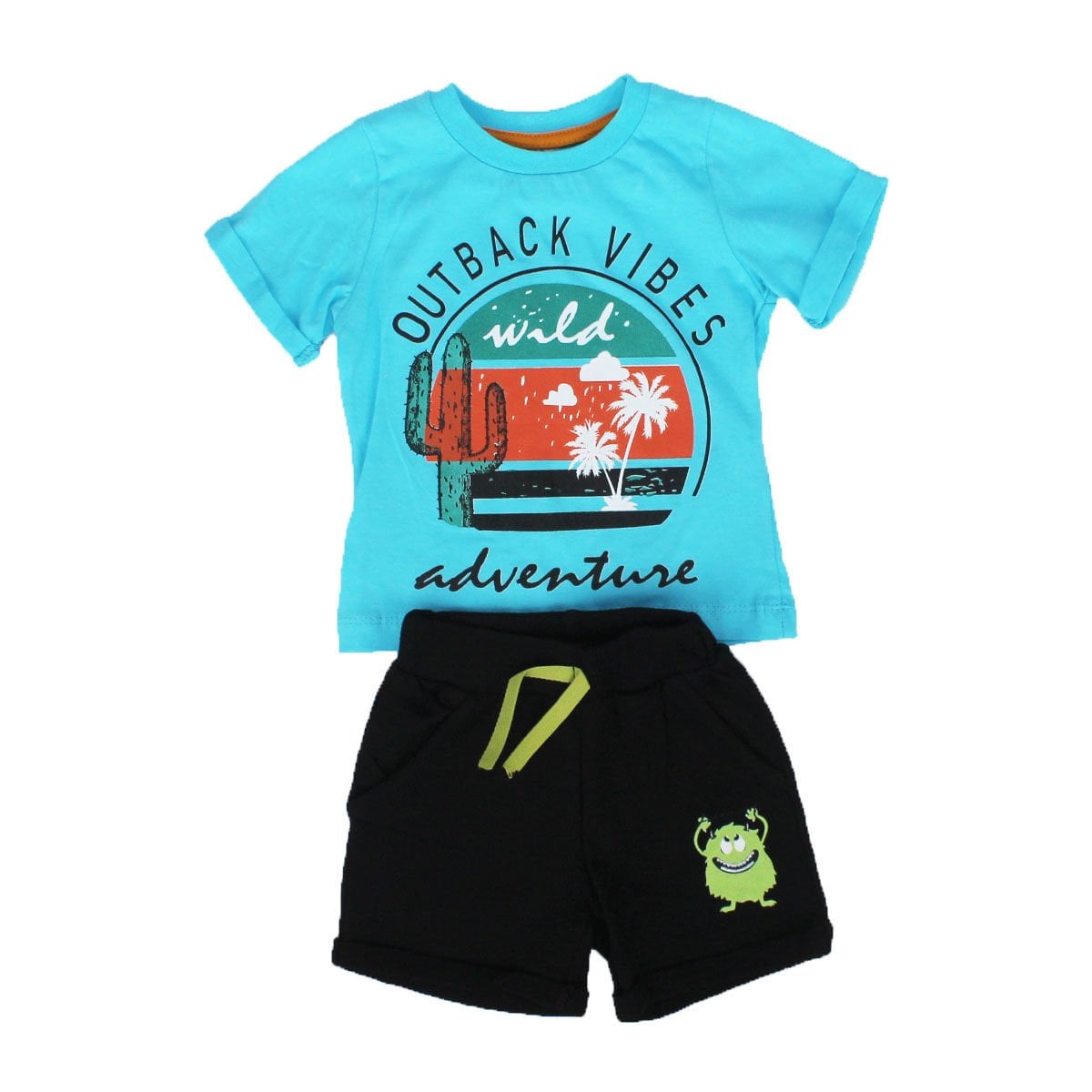 Erkek Bebek Mavi Laci Kaktüs Baskılı Şortlu Takım