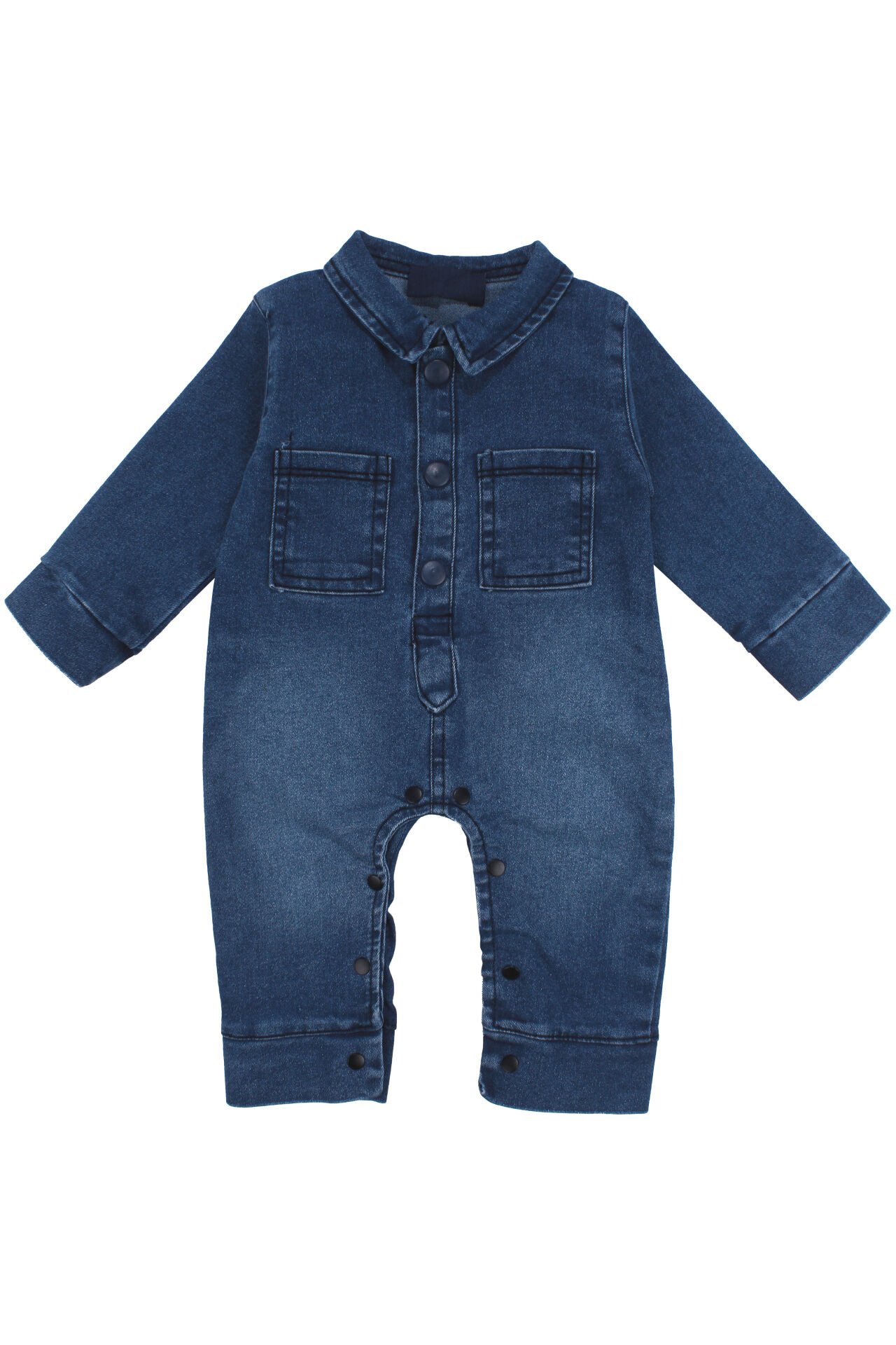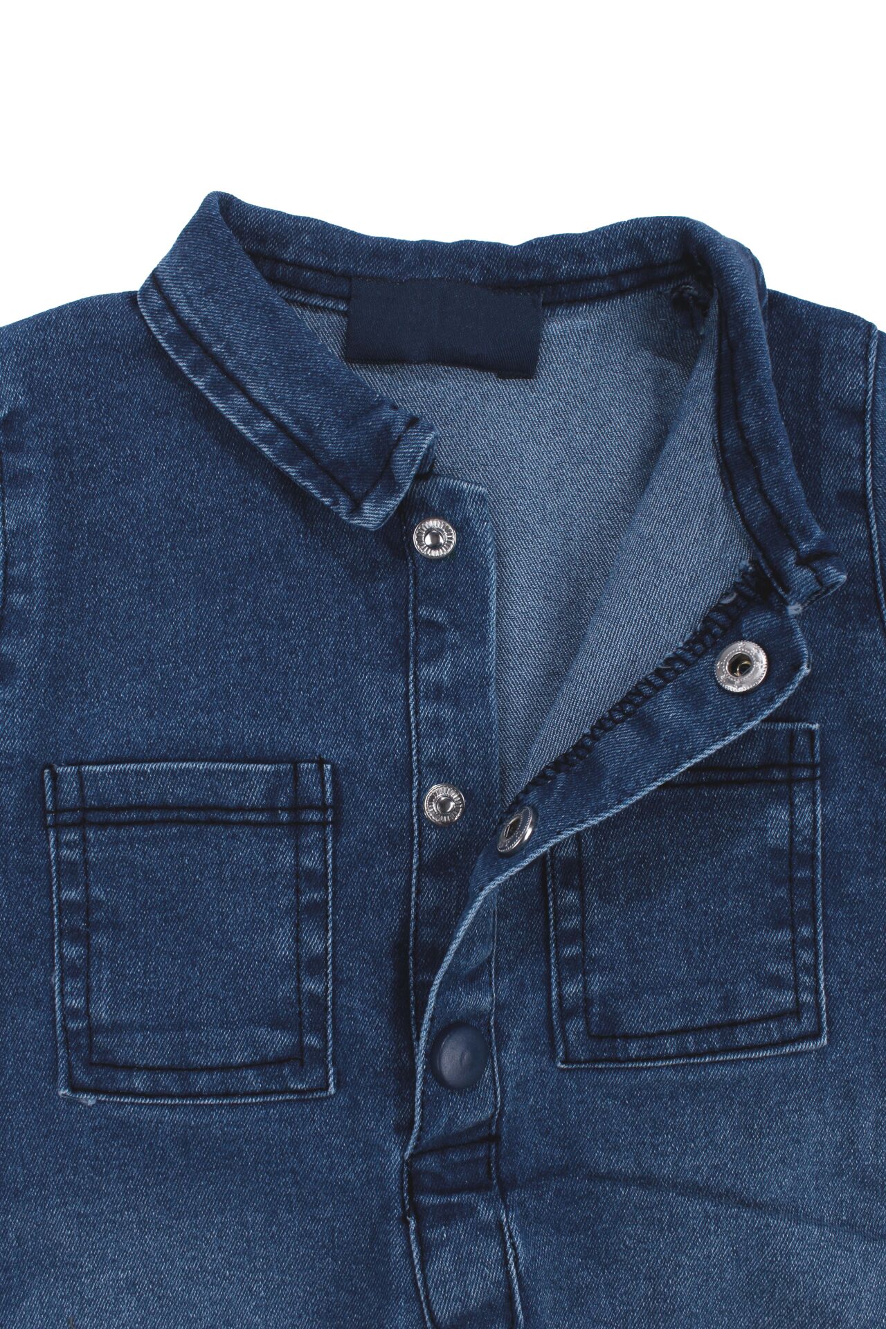 Erkek Bebek Mavi Yakalı Cepli Çıtçıtlı Kot Tulum