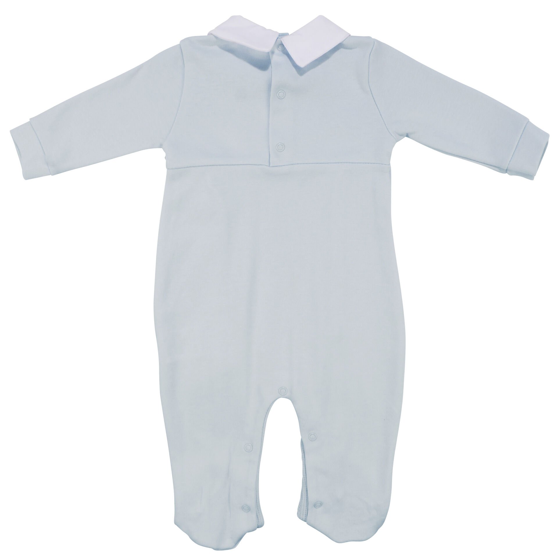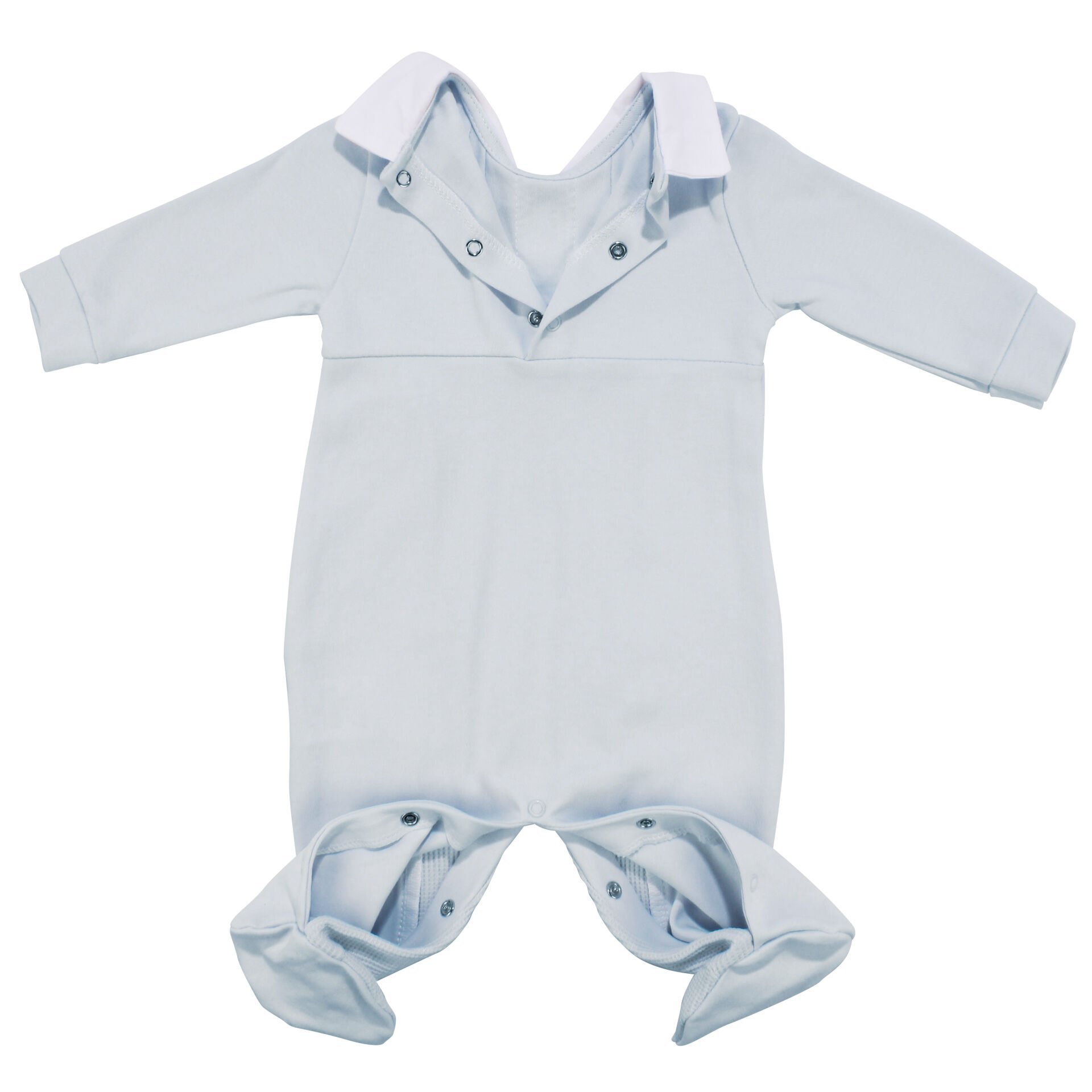 Erkek Bebek Mavi Yakalı Düğmeli Patikli Tulum