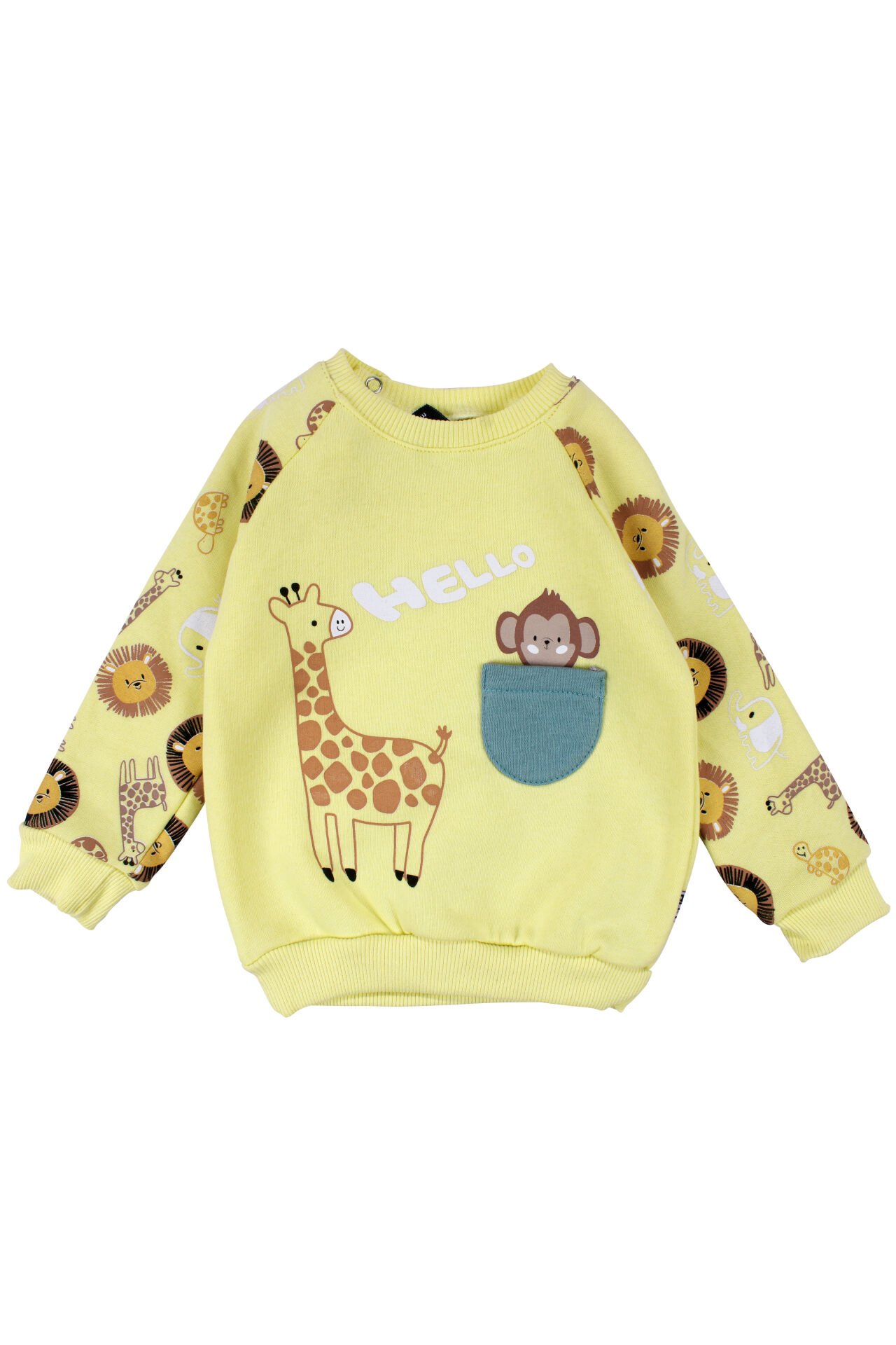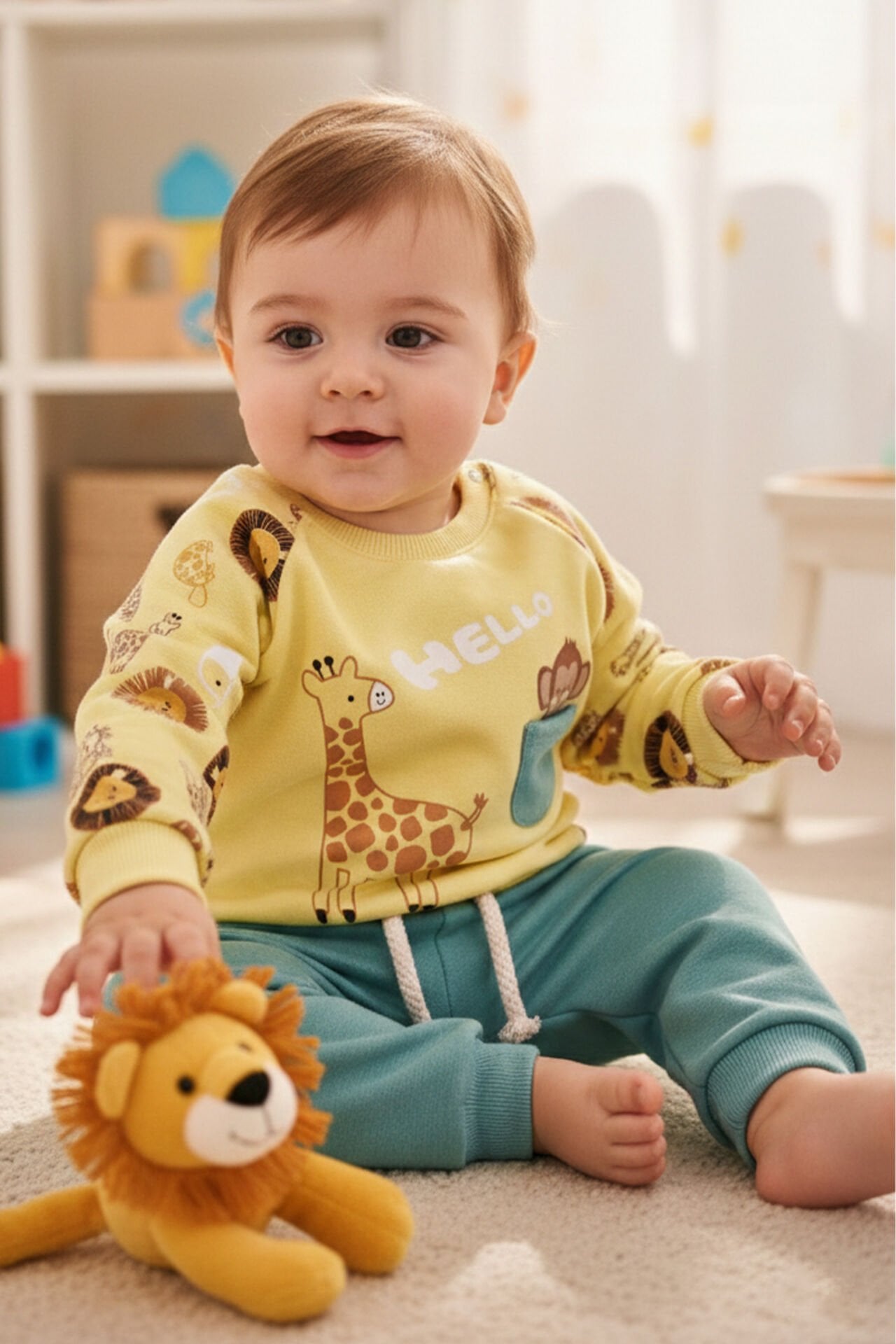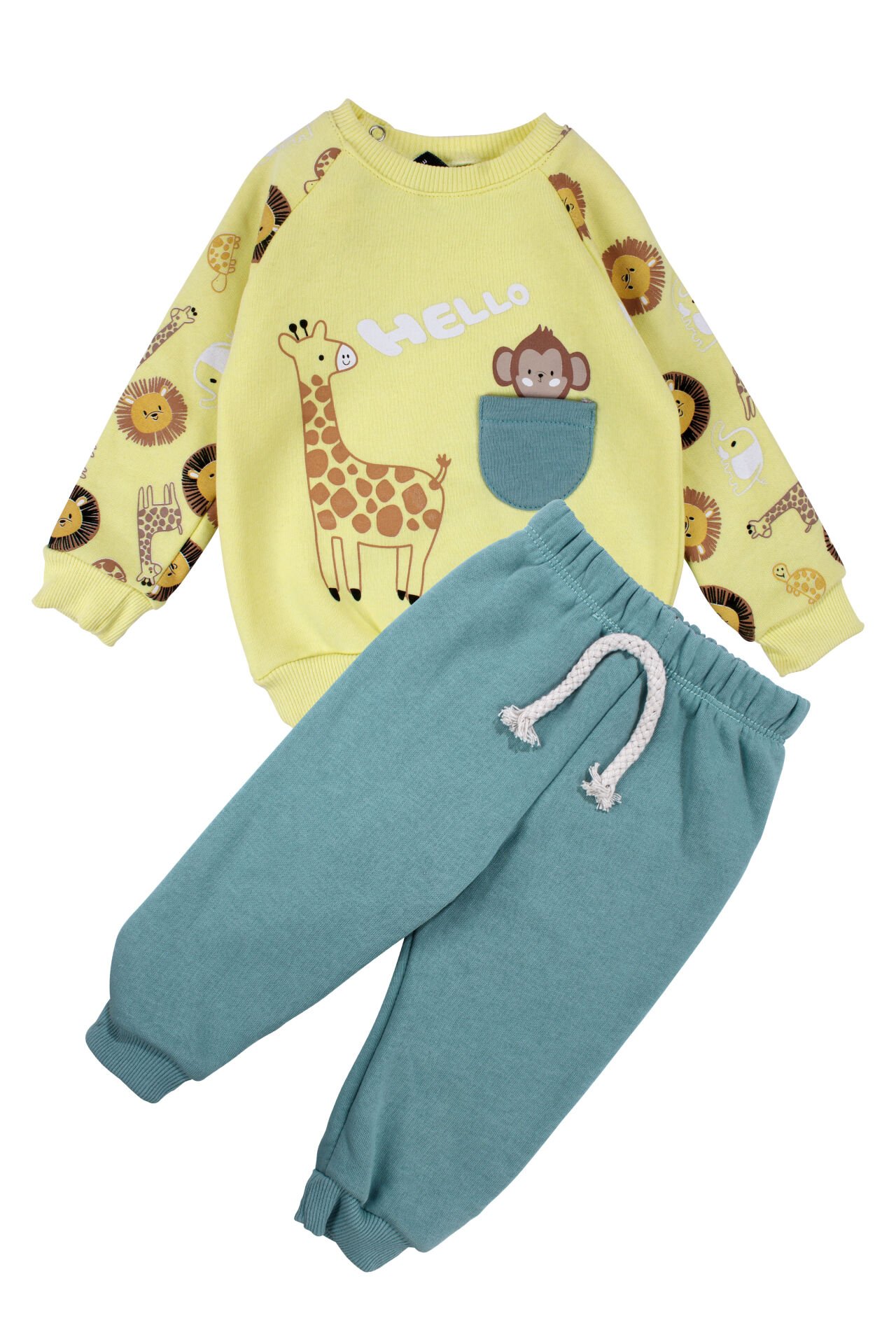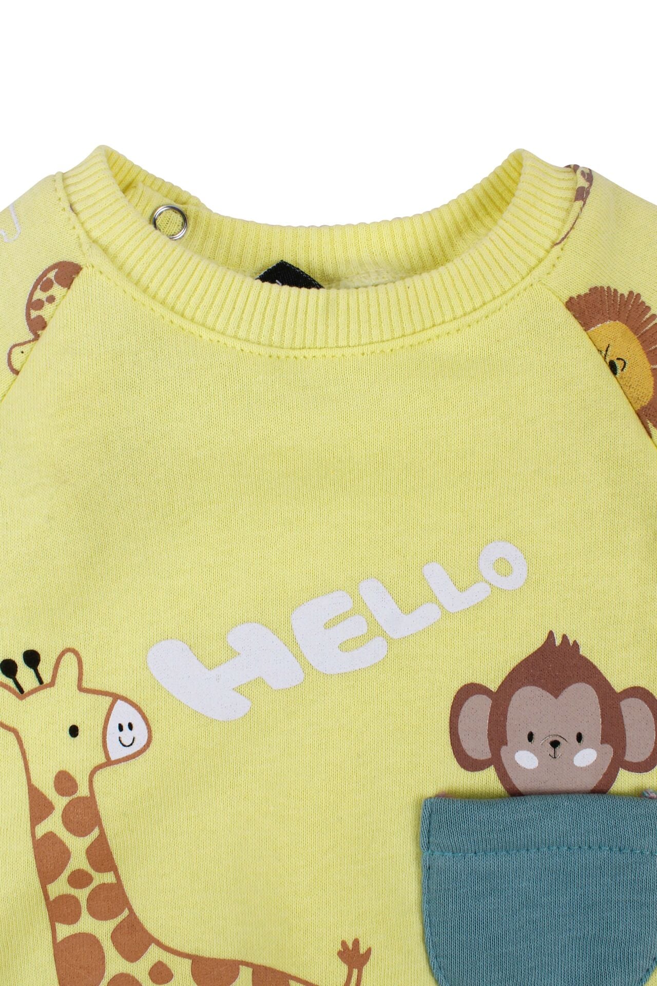 Erkek Bebek Sarı Cepli Maymun Baskılı 2'li Takım