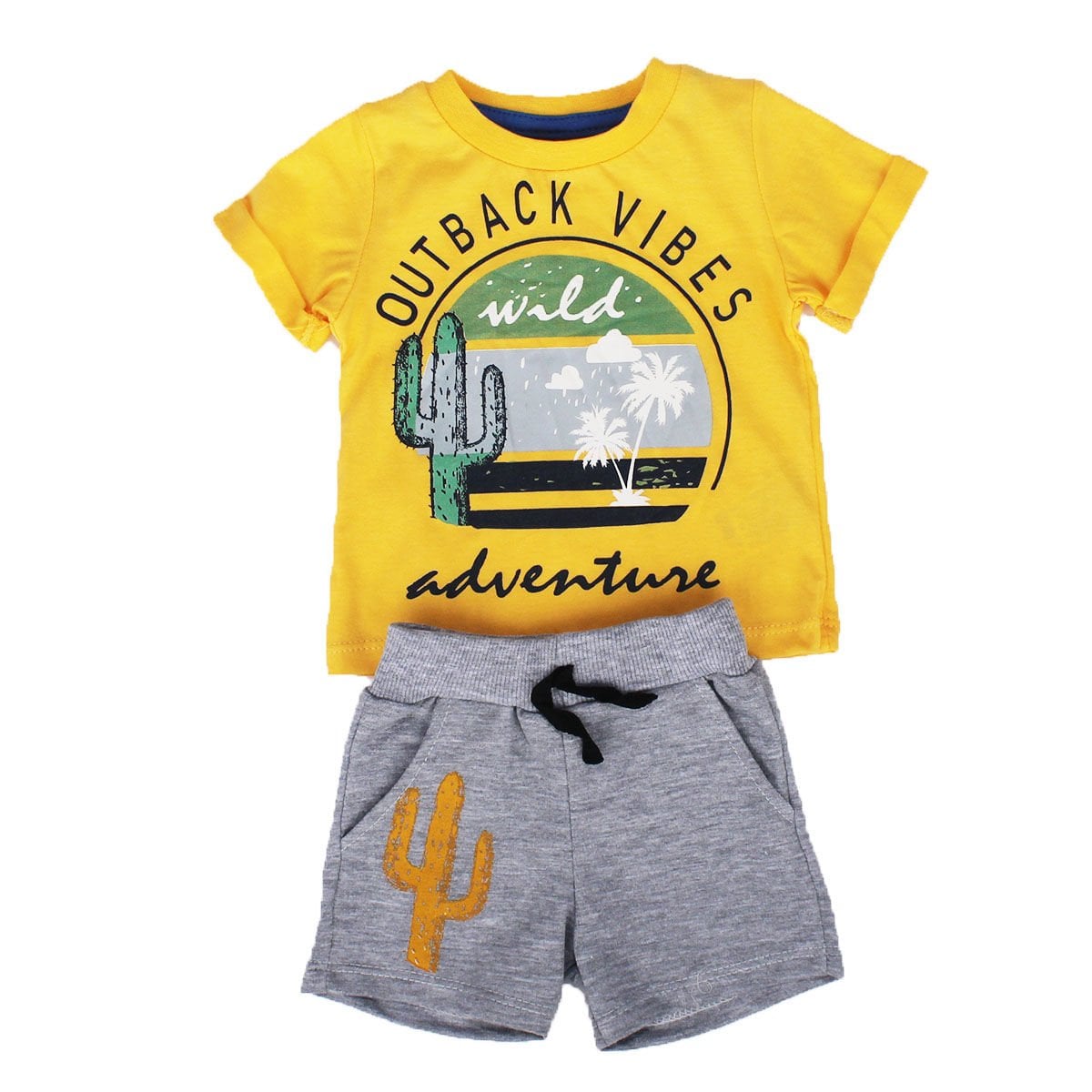 Erkek Bebek Sarı Gri Kaktüs Baskılı Şortlu Takım