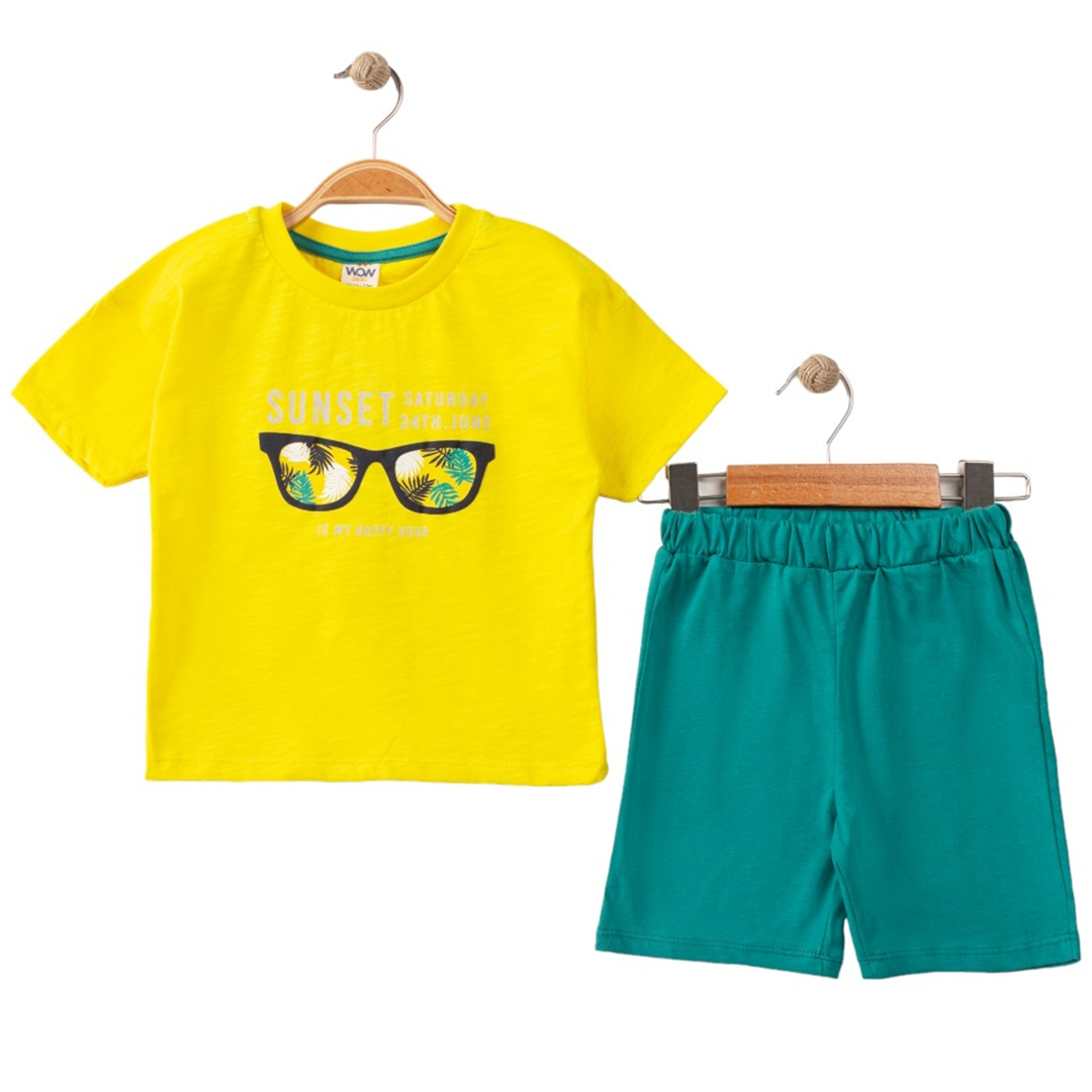Erkek Bebek Sarı Yeşil Gözlük Baskılı Şortlu 2'li Takım