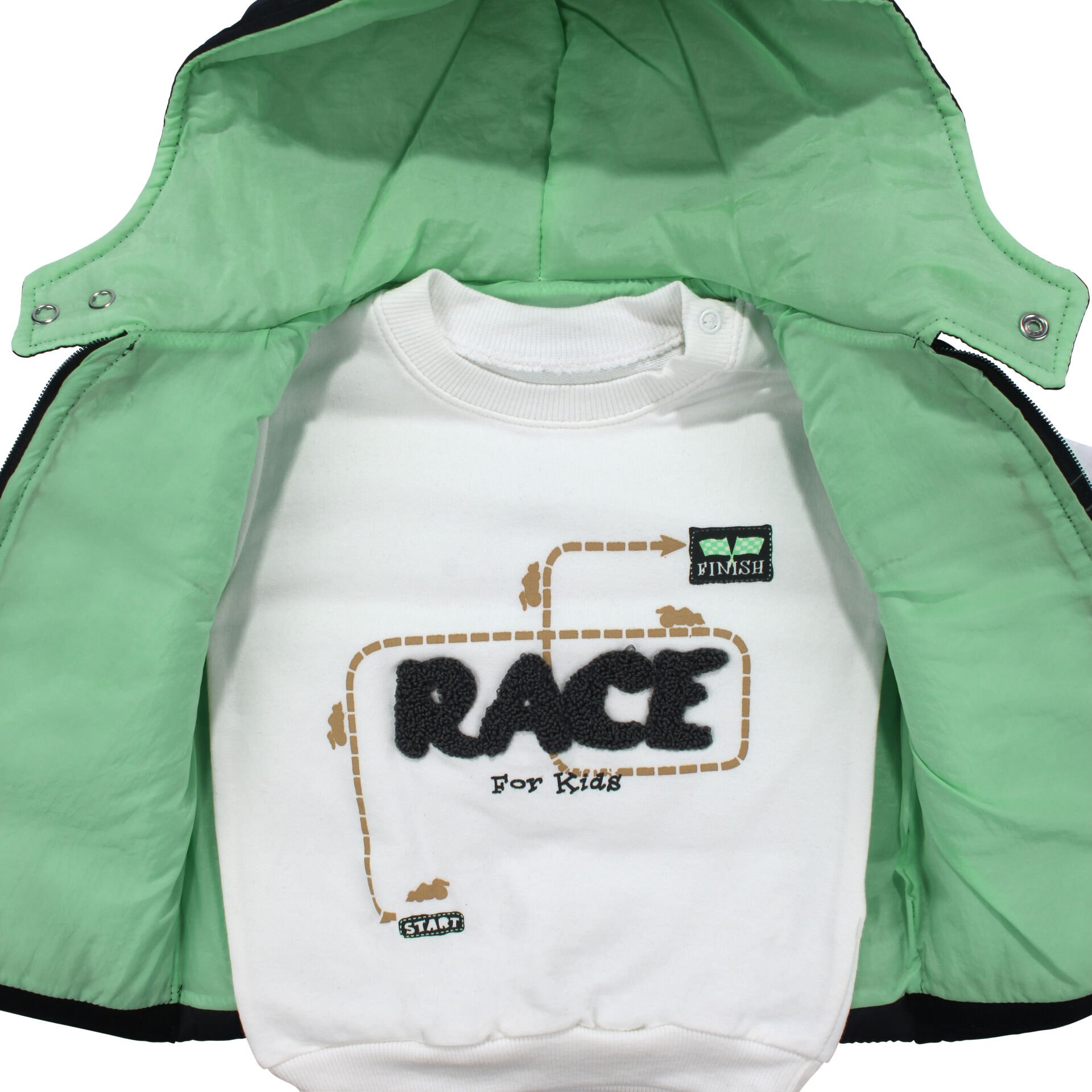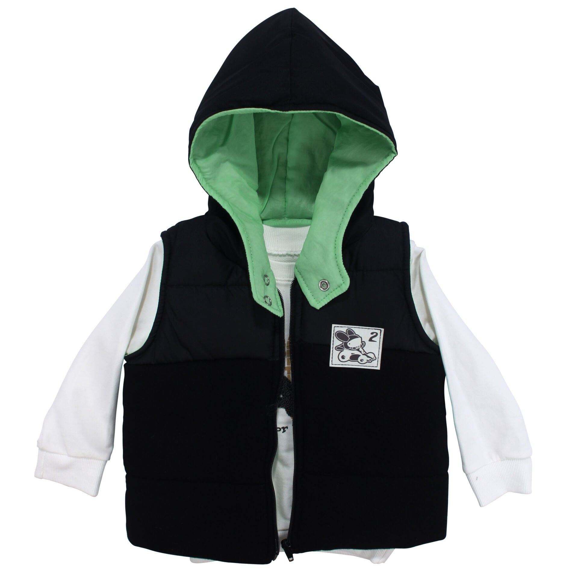 Erkek Bebek Siyah Yeşil Şapkalı Şişme Yelekli Badili 3'lü Takım