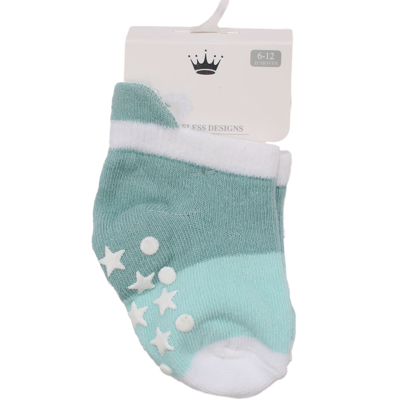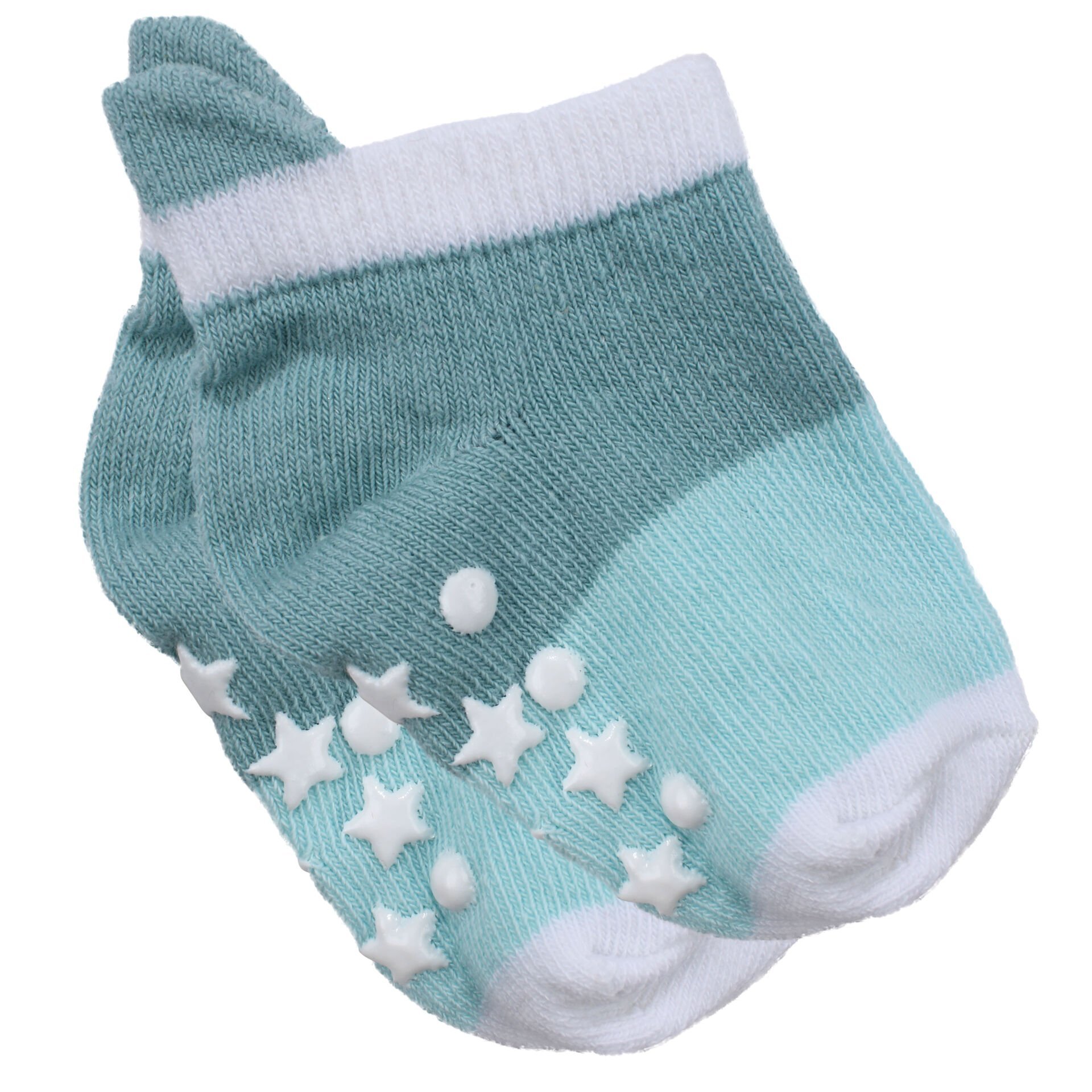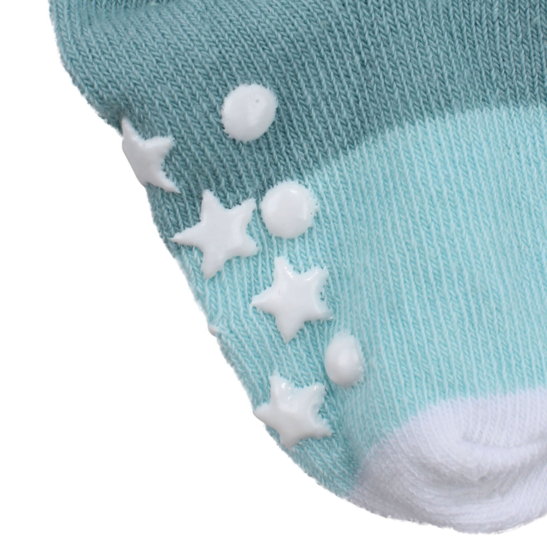 Erkek Bebek Turkuaz Yıldız Desenli Kaydırmaz Taban Çorap