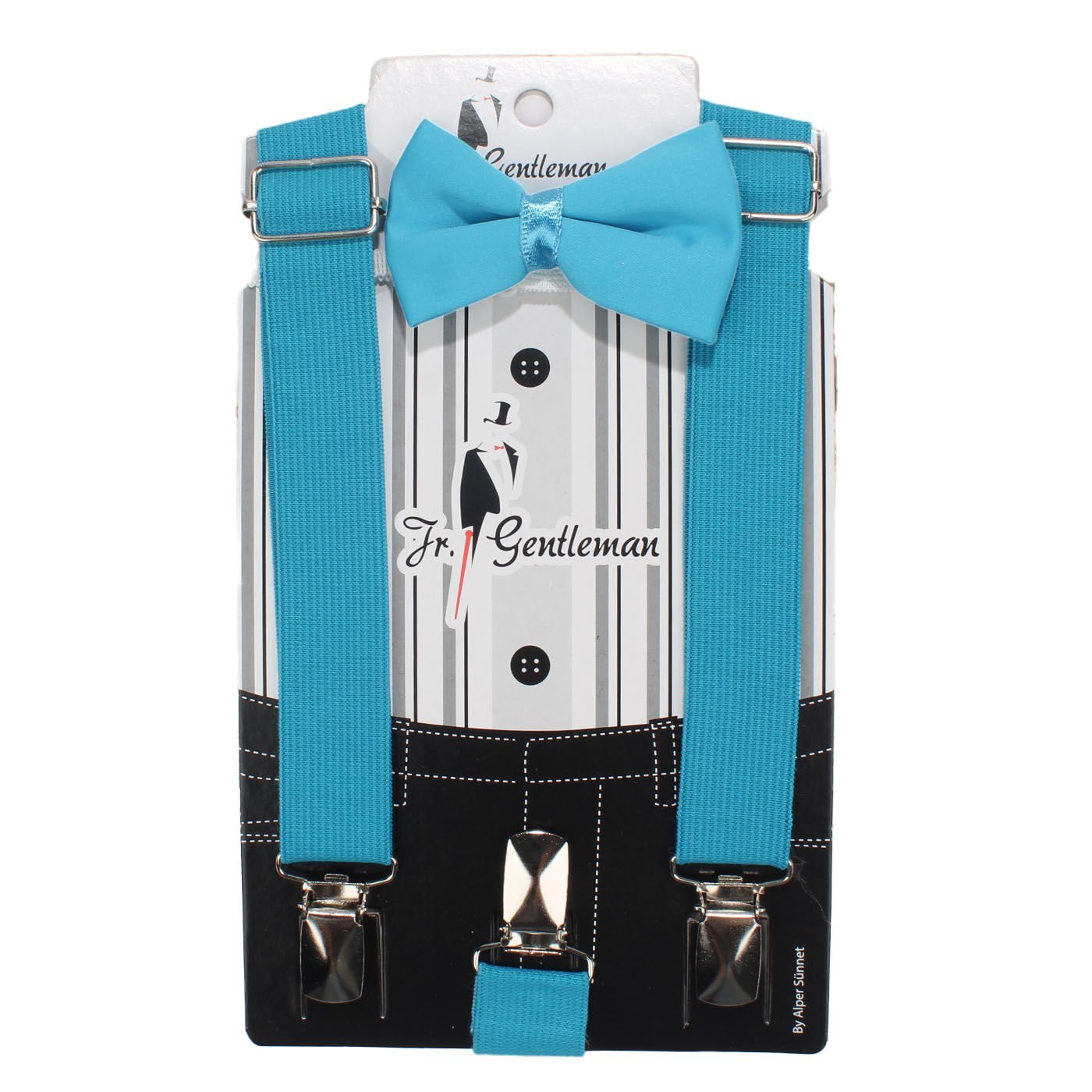 Erkek Bebek Turkuvaz Lasitikli Papyon Pantolon Askı Set
