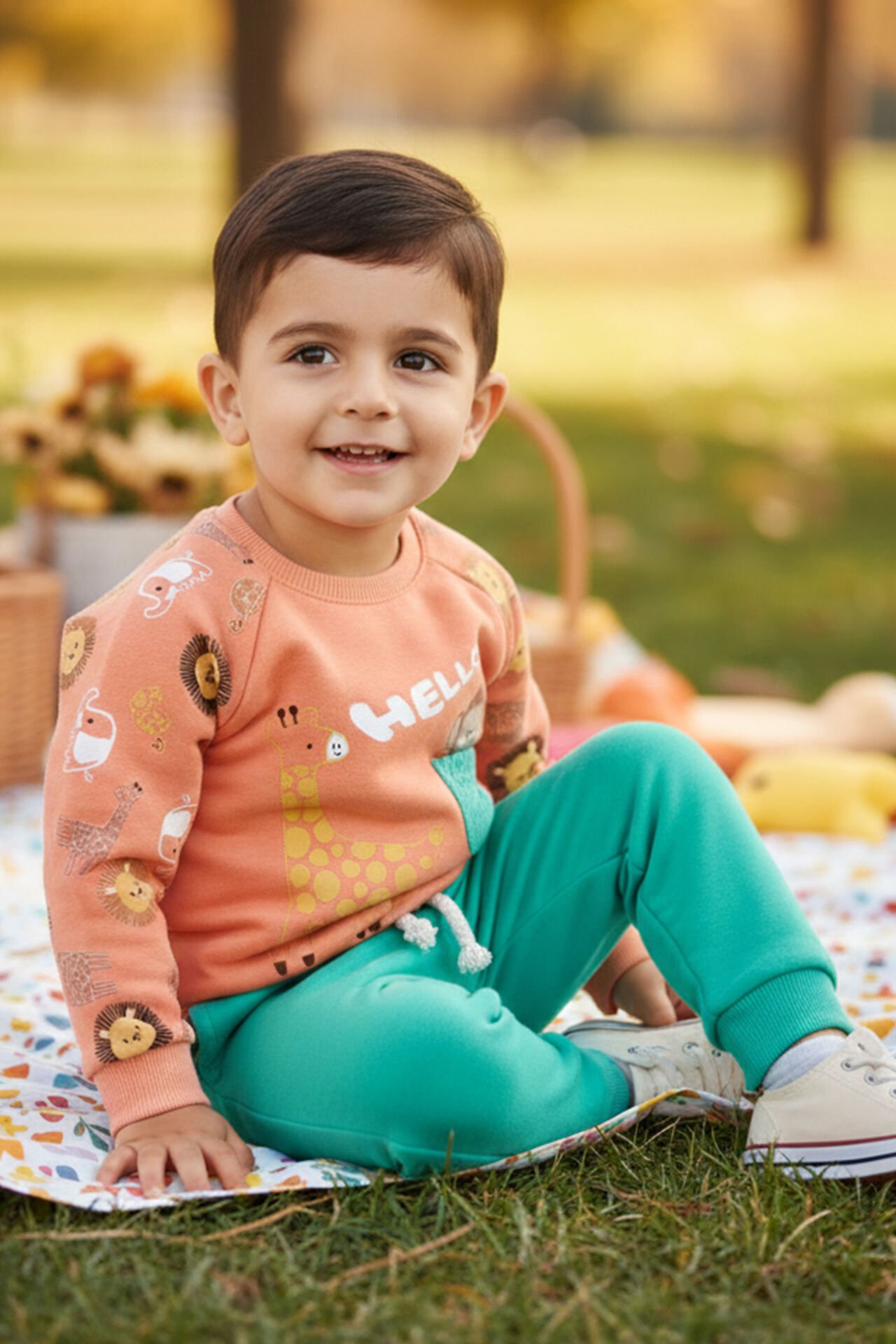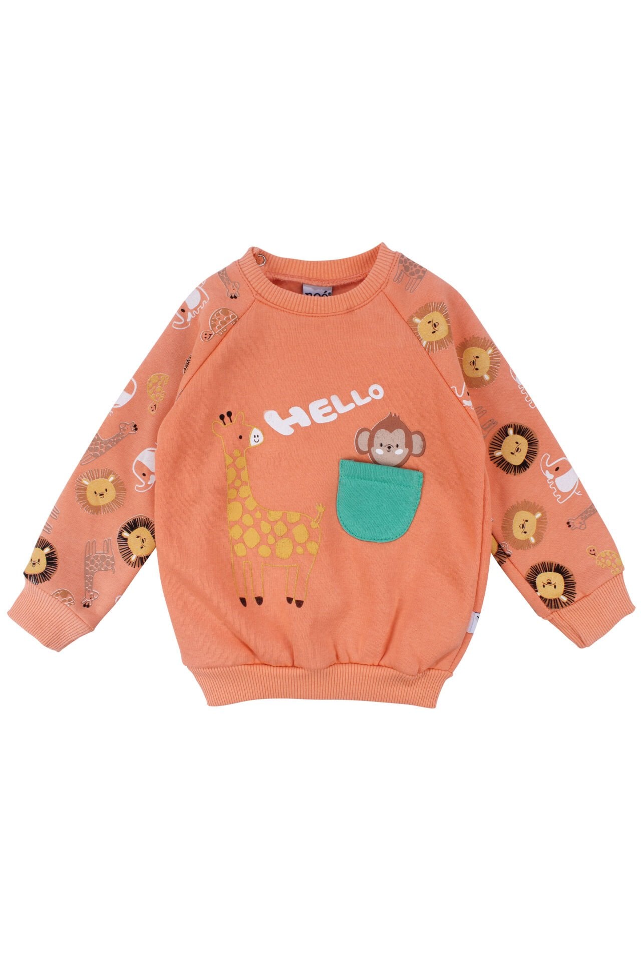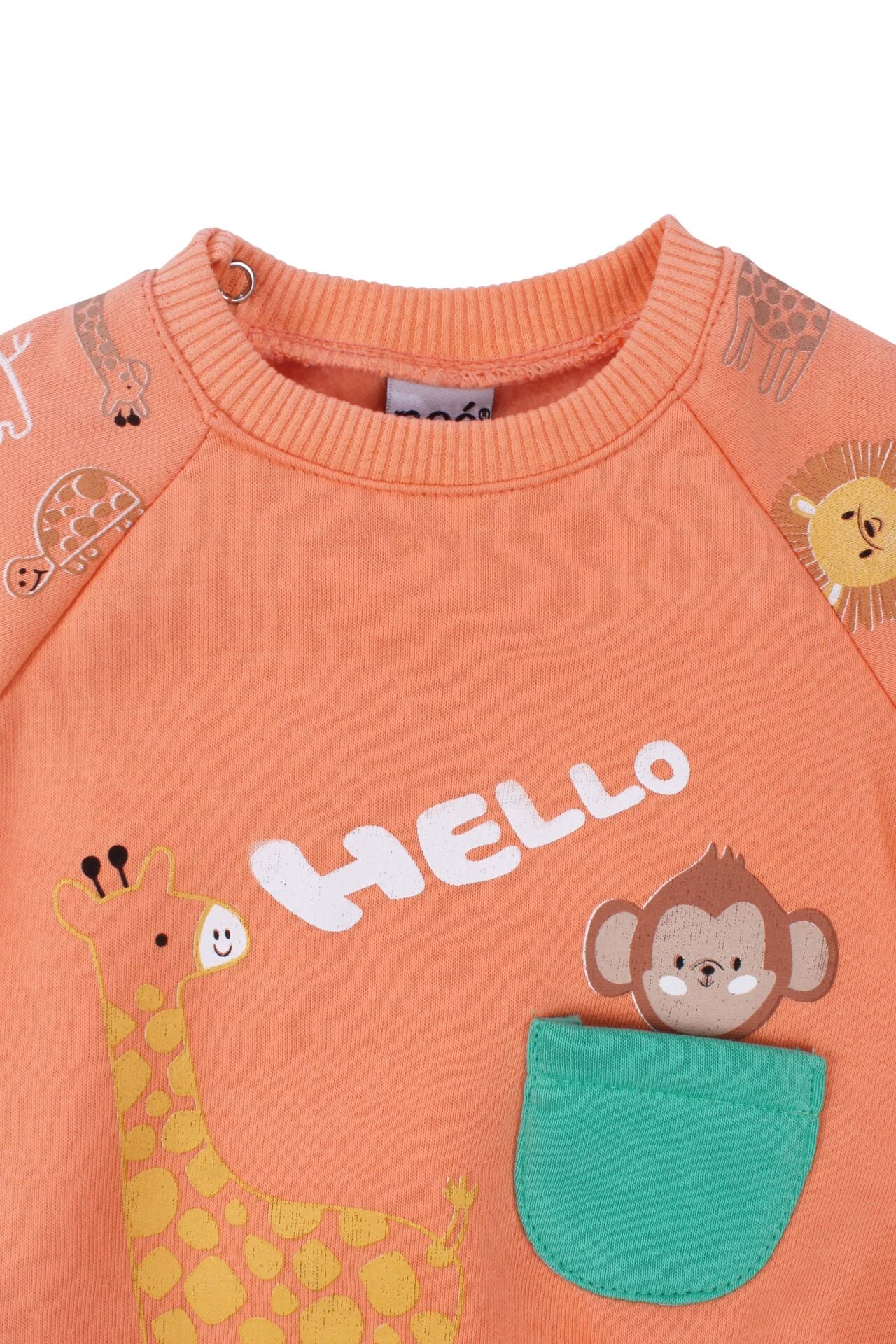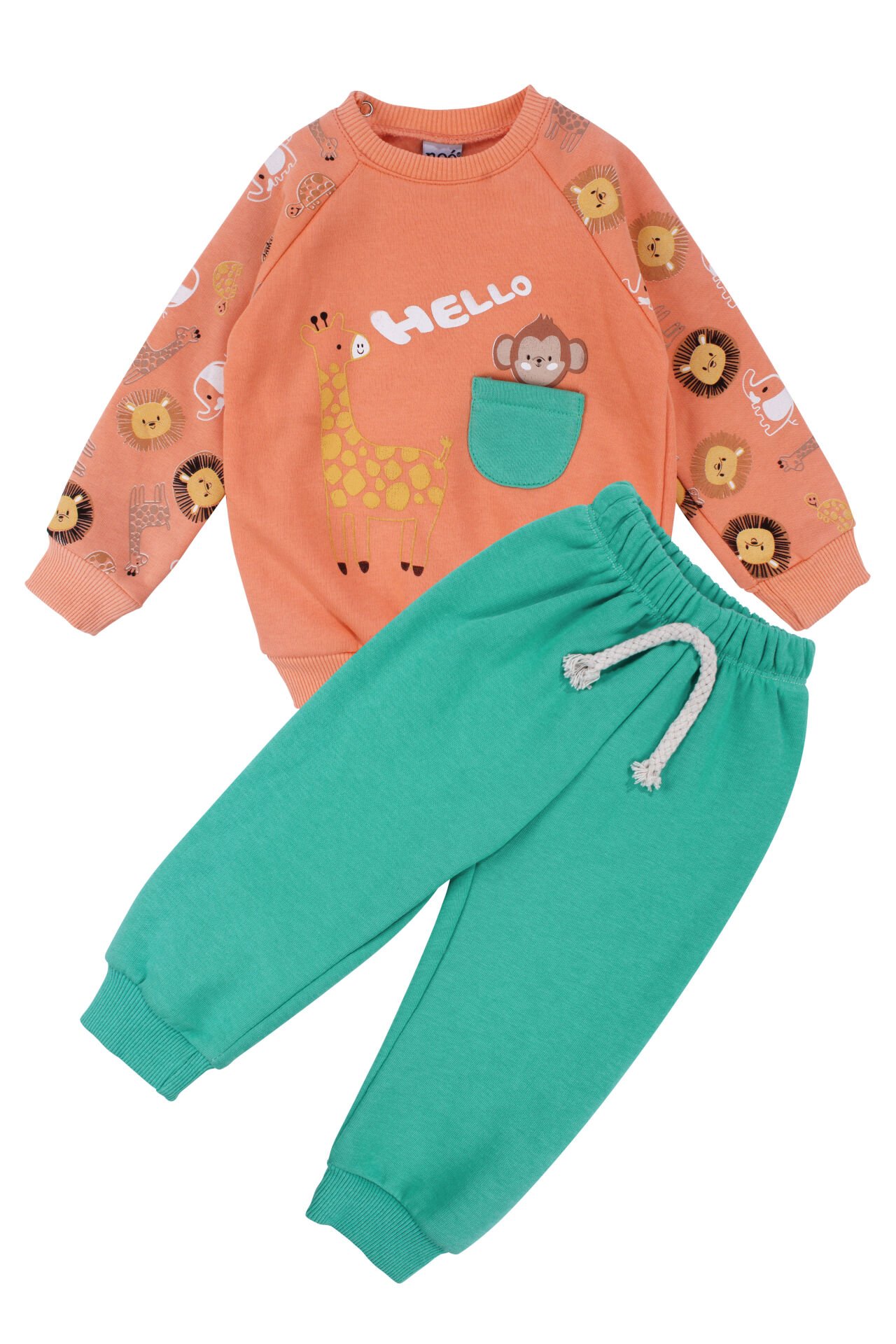 Erkek Bebek Turuncu Cepli Maymun Baskılı 2'li Takım