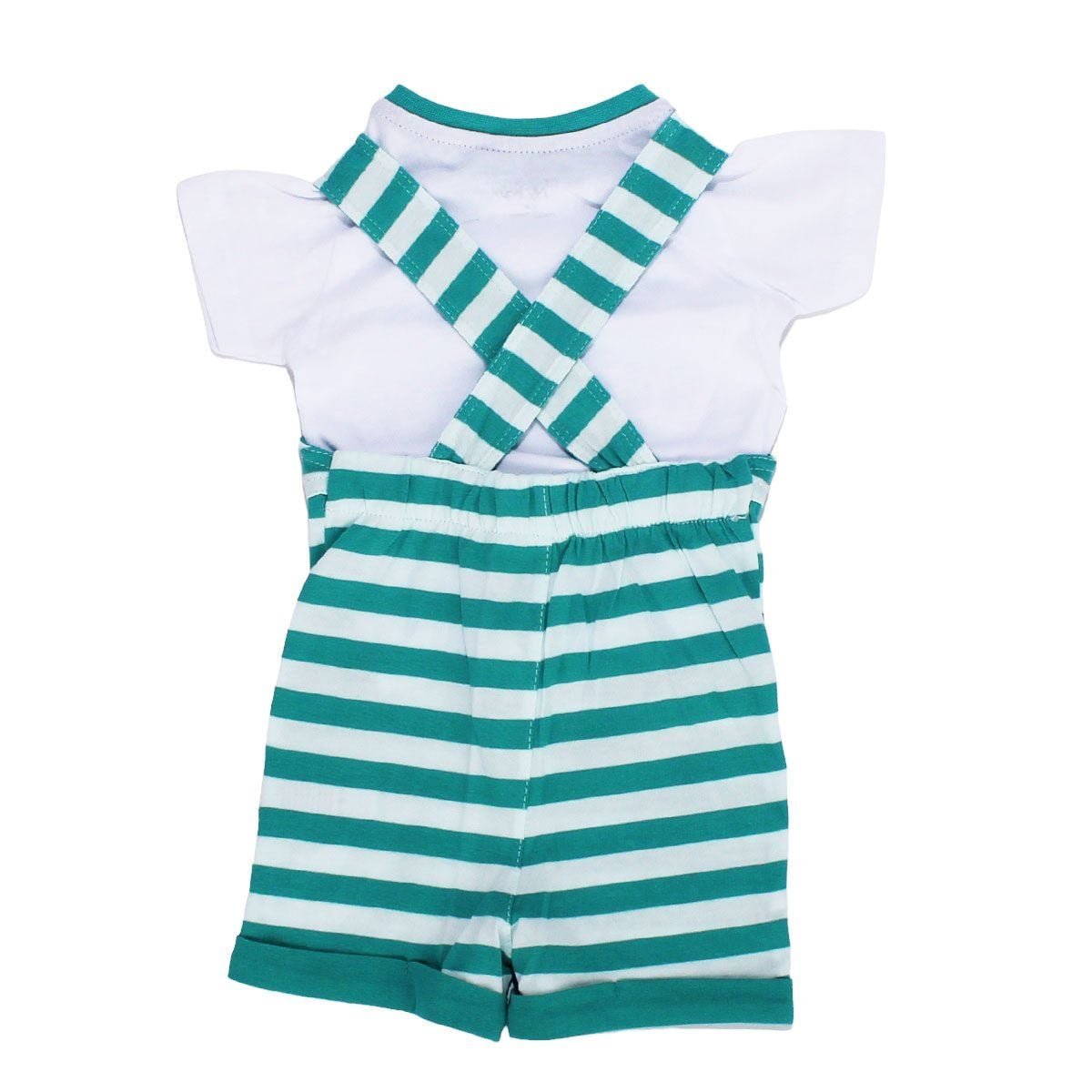 Erkek Bebek Yeşil Beyaz Çizgili Tişörtlü Tulum