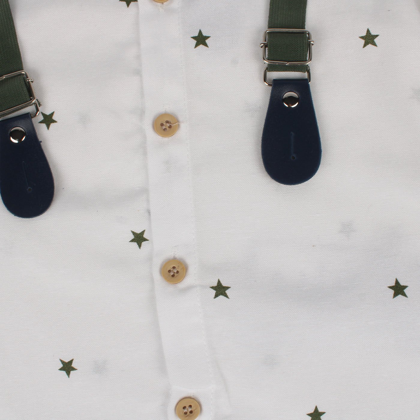 Erkek Çocuk Beyaz Yeşil Yıldız Desenli Papyonlu Gömlekli Papyonlu Askılı 2'li Takım