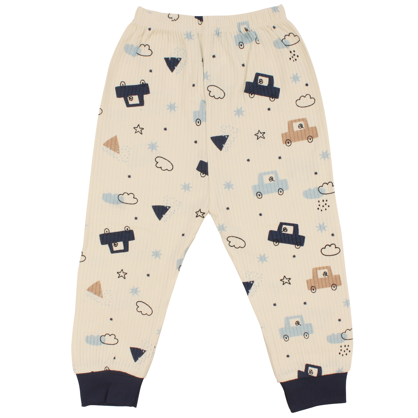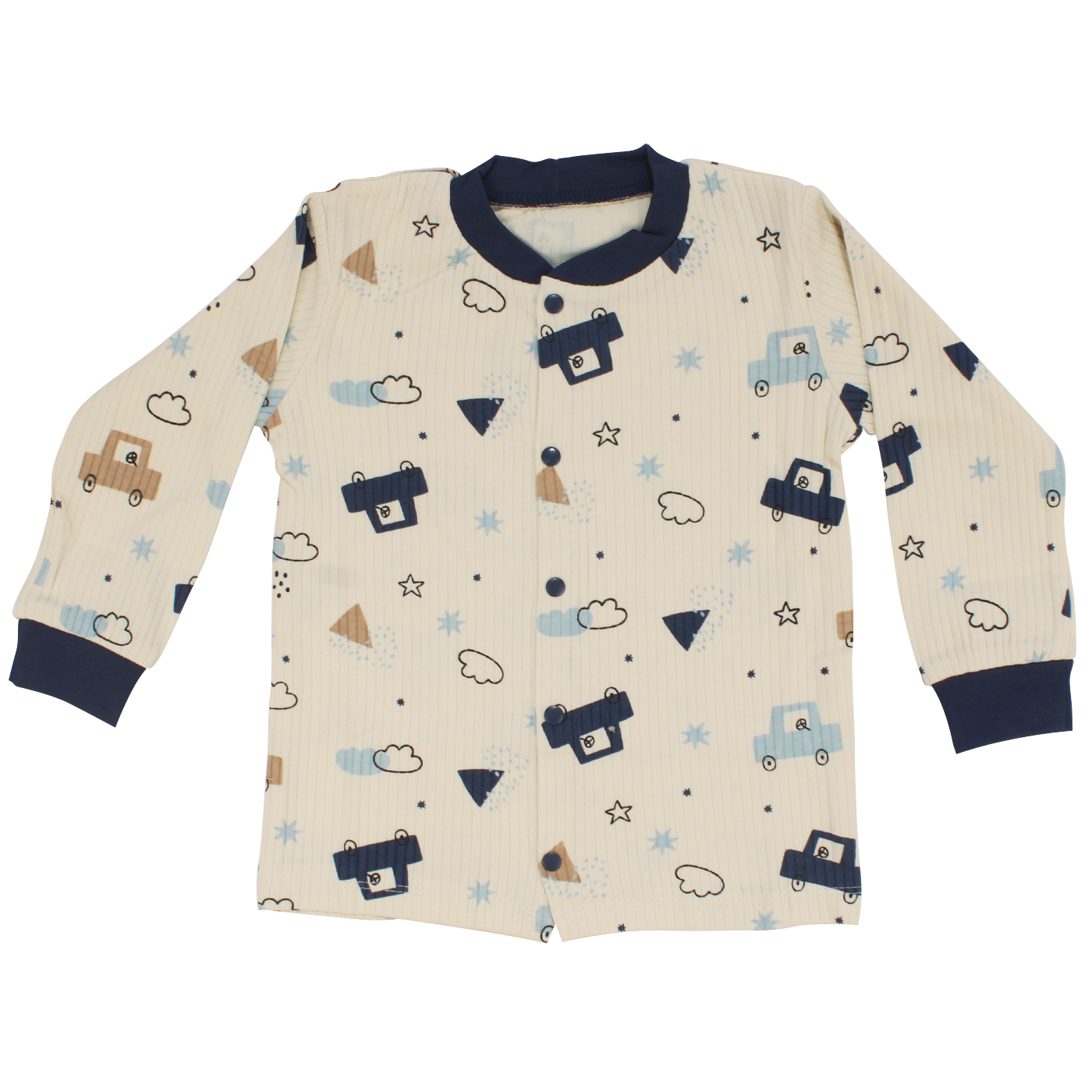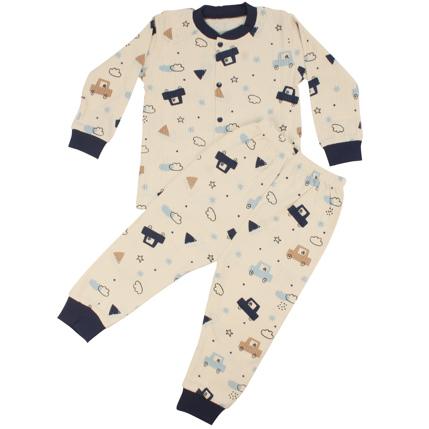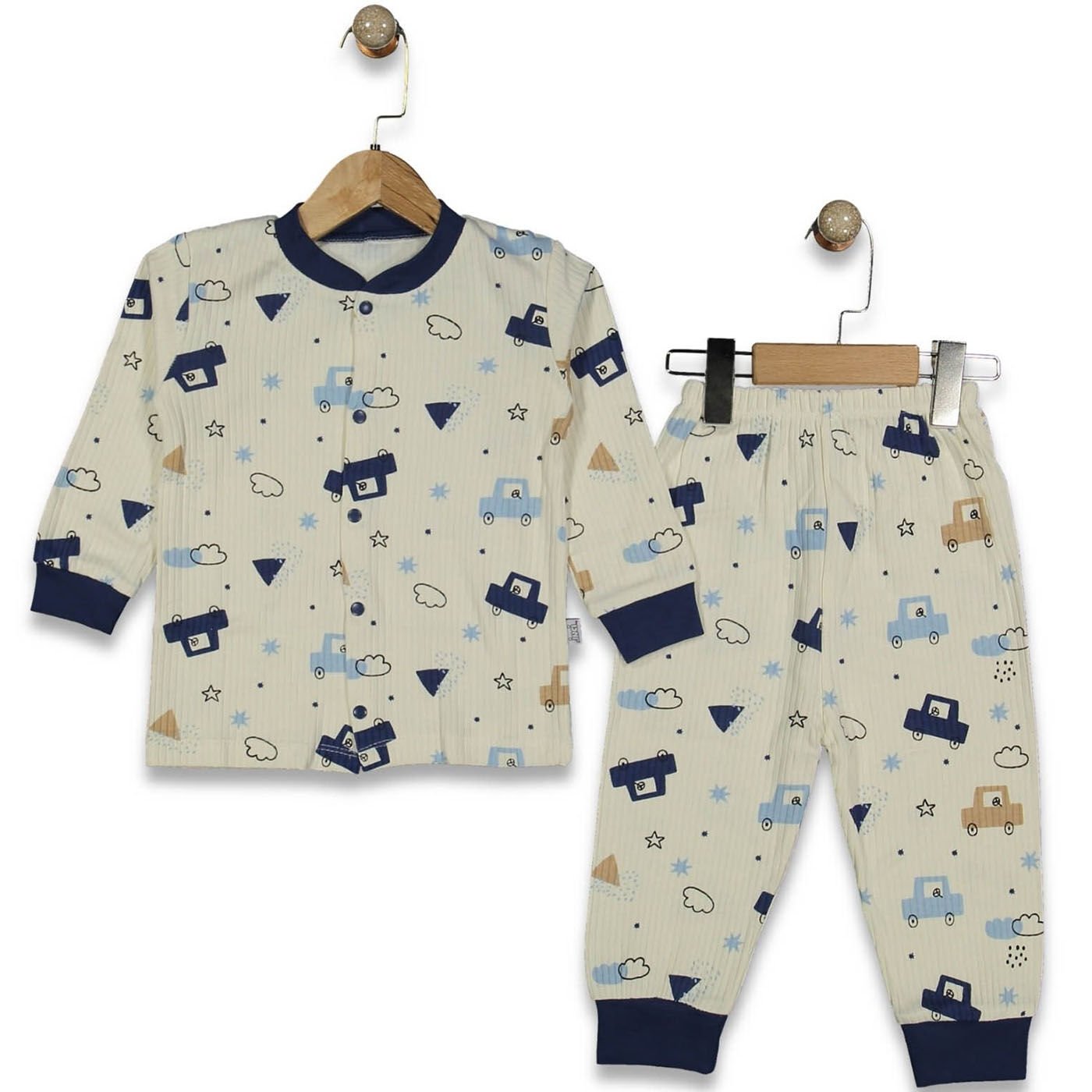 Erkek Çocuk Ekru Laci Arabalı Desenli Çıtçıtlı Pijama Takımı