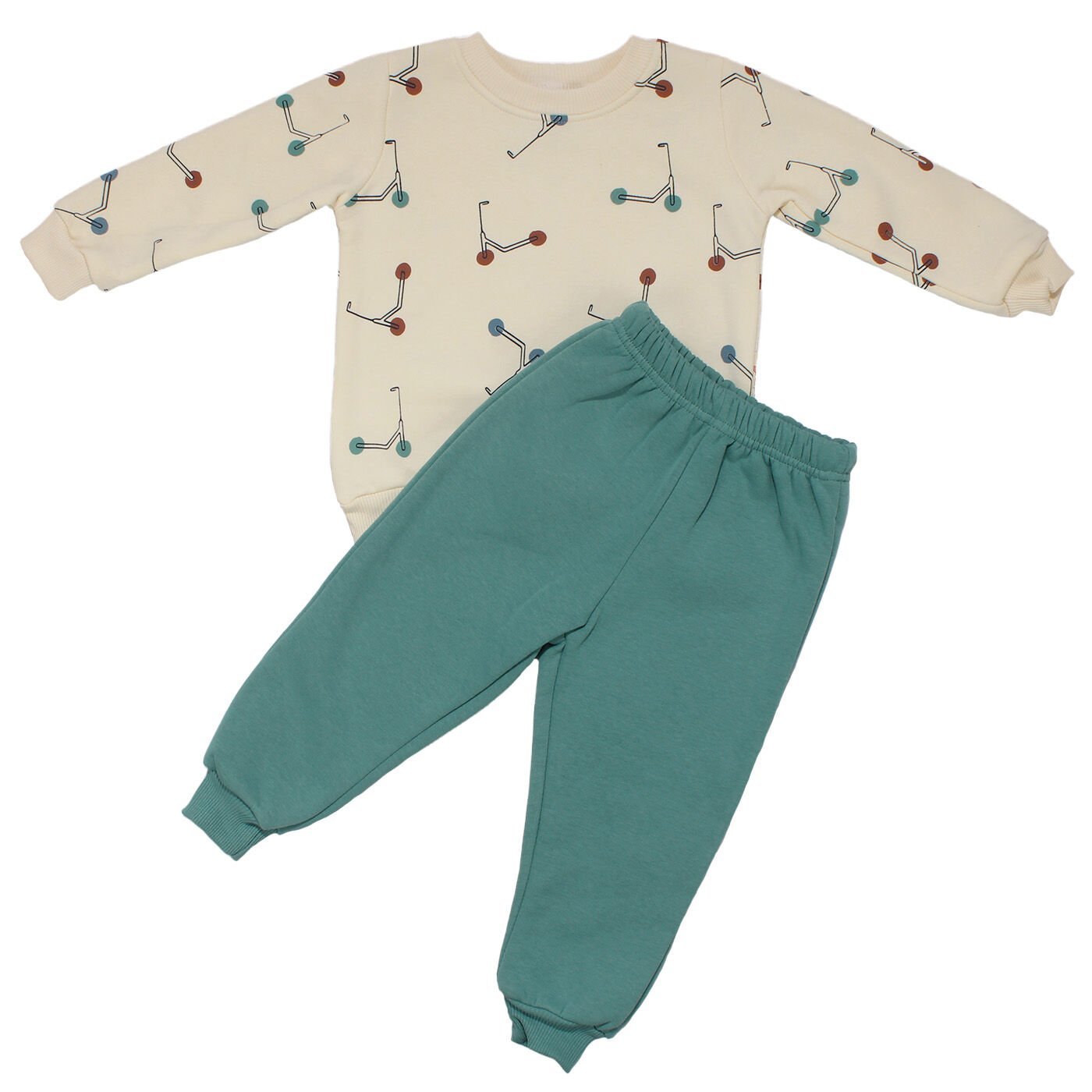 Erkek Çocuk Ekru Yeşil Renkli Scooter Baskılı Üç İp 2'li Takım