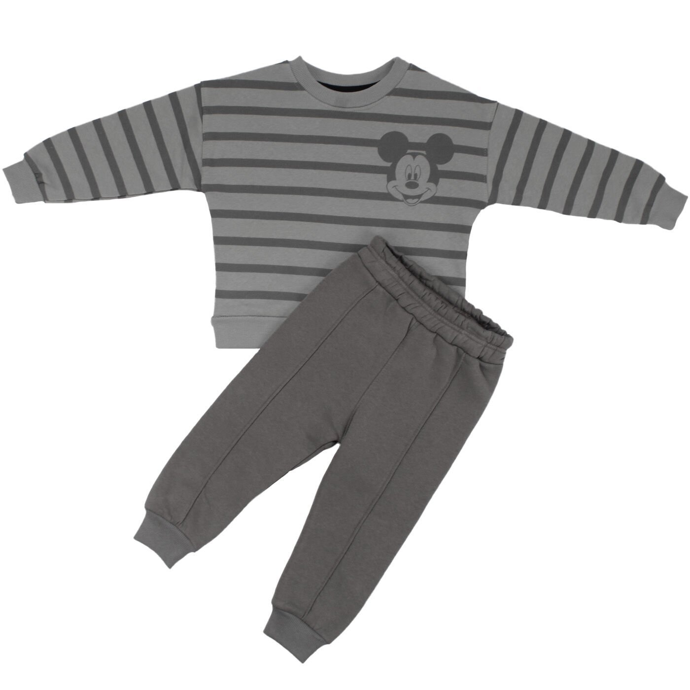 Erkek Çocuk Gri Çizgili Fare Baskılı 2'li Takım
