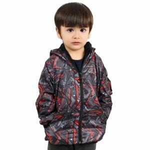Erkek Çocuk Gri Kırmızı Karışık Desenli İçi Polar Yağmurluk