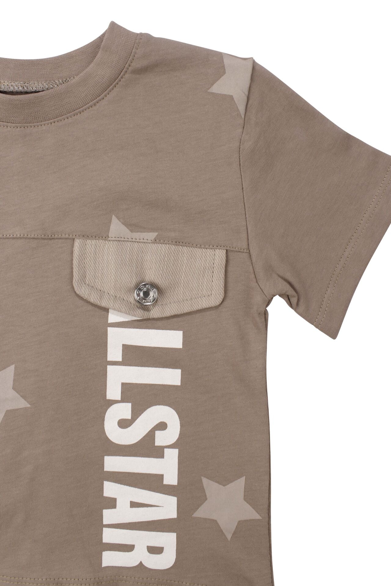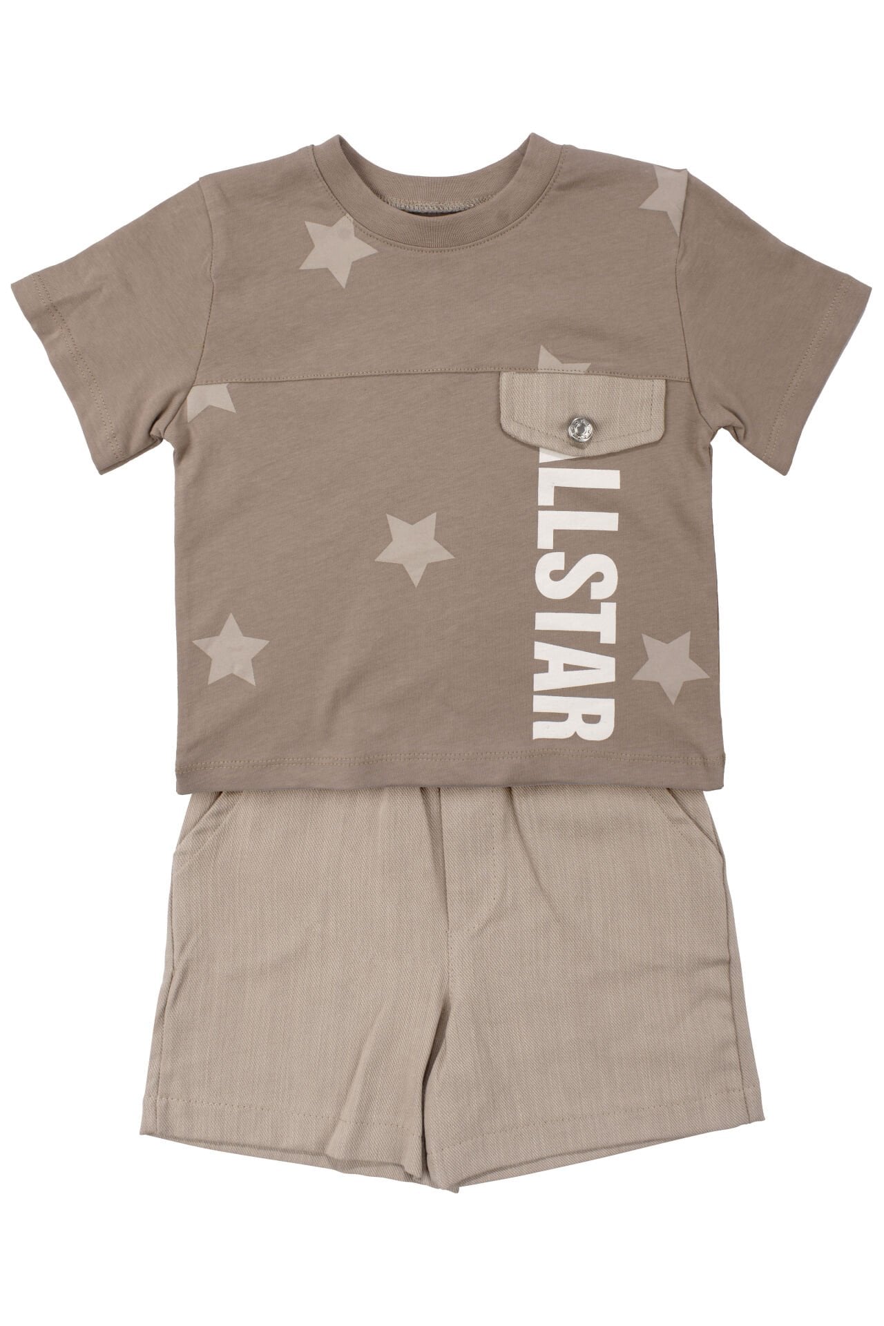 Erkek Çocuk Kahve All Star Yazılı Yıldız Baskılı Cepli Şortlu 2'li Takım