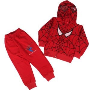 Erkek Çocuk Kırmızı Örümcek Adam Desenli Maskeli Kapşonlu 3 ip 2'li Takım