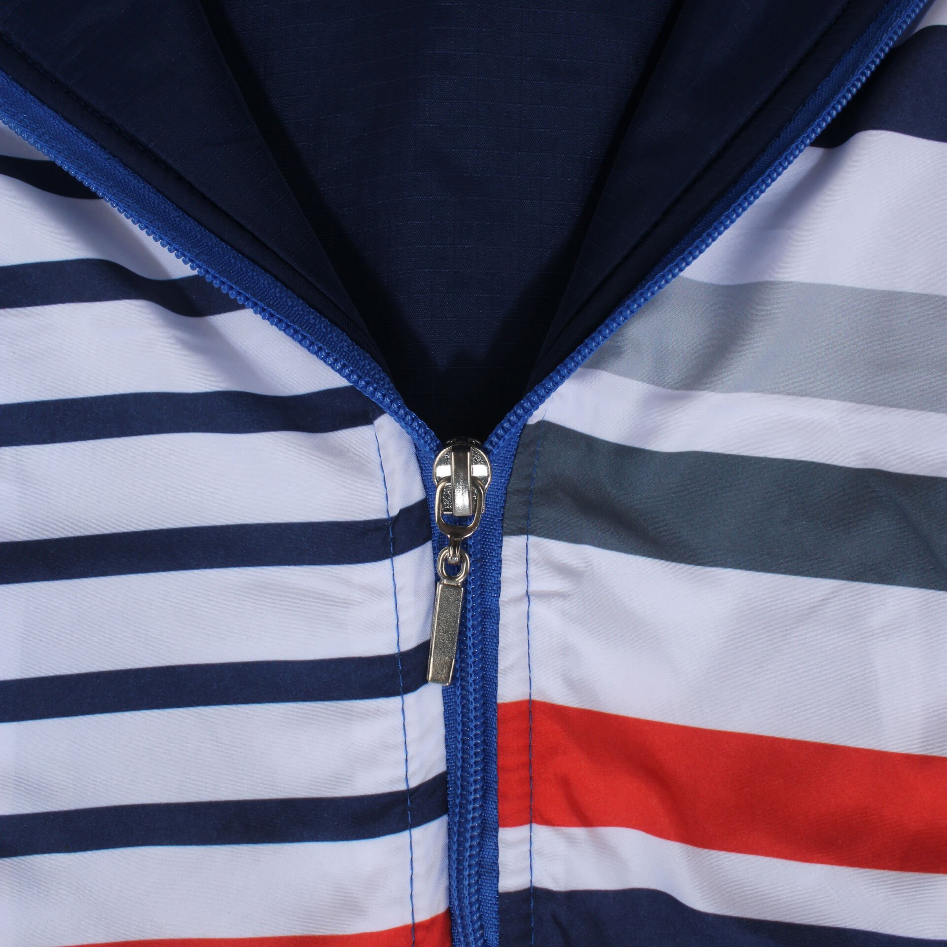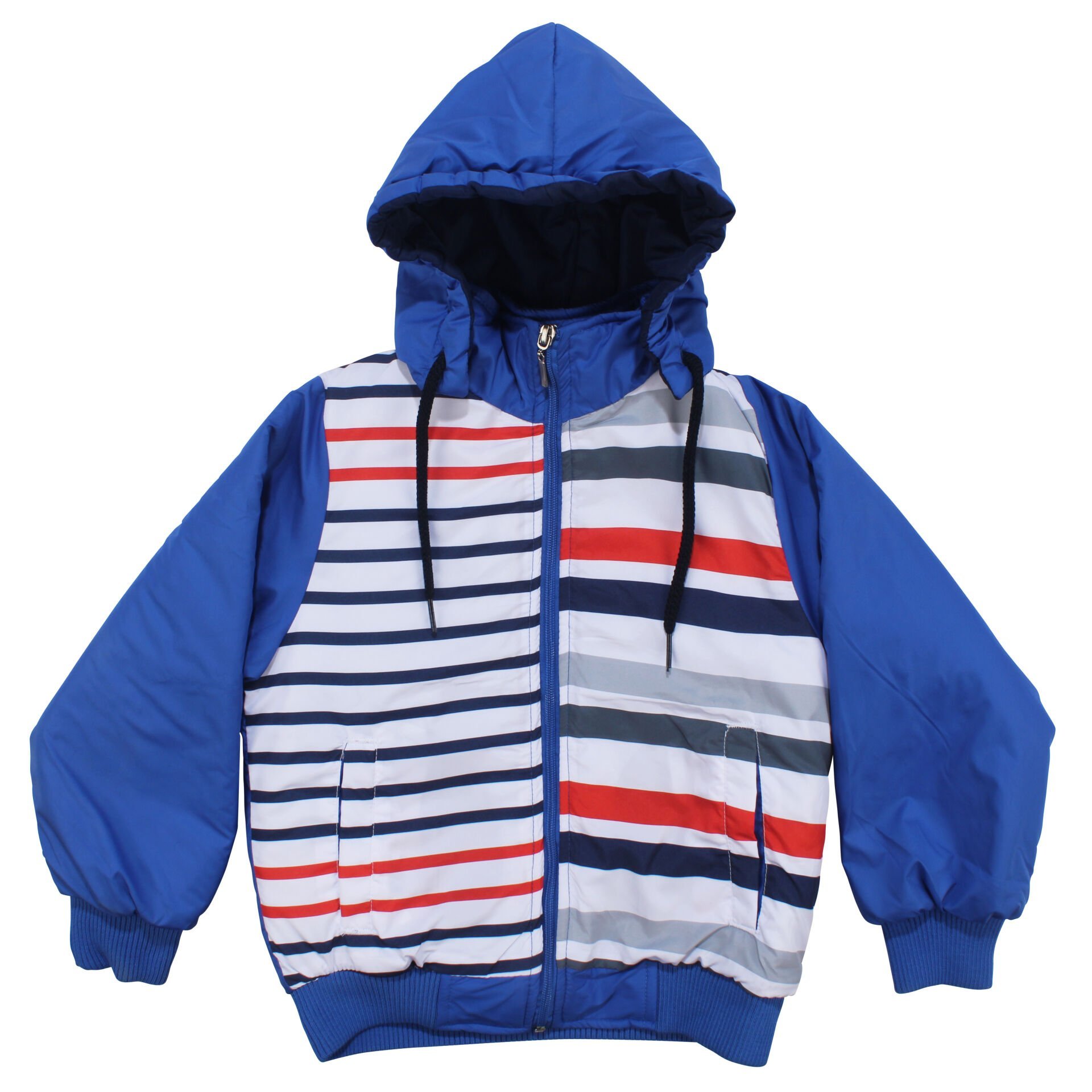 Erkek Çocuk Mavi Renkli Çizgili Desenli Kapşonlu Şişme Mont