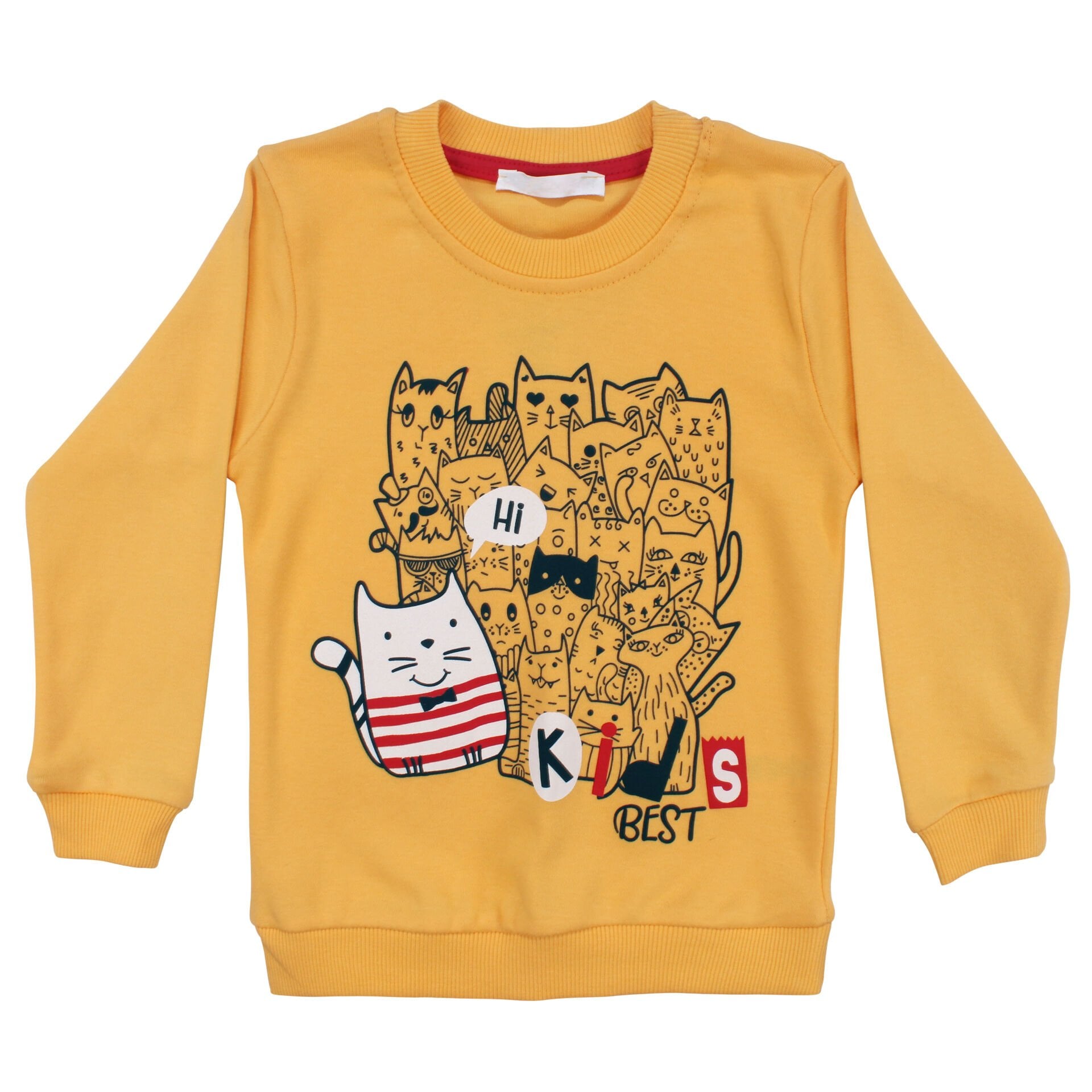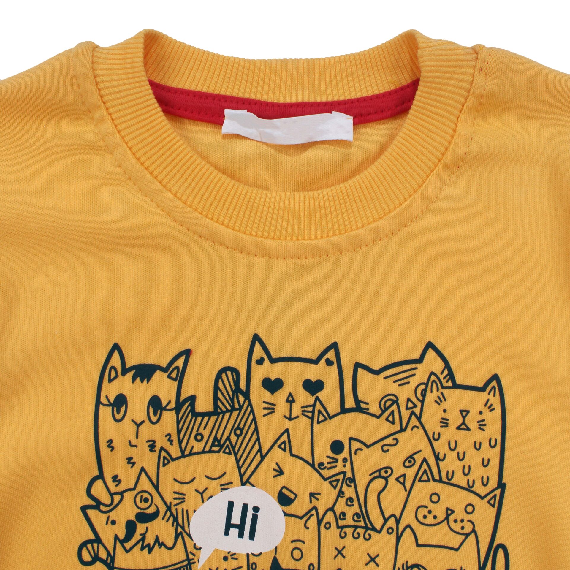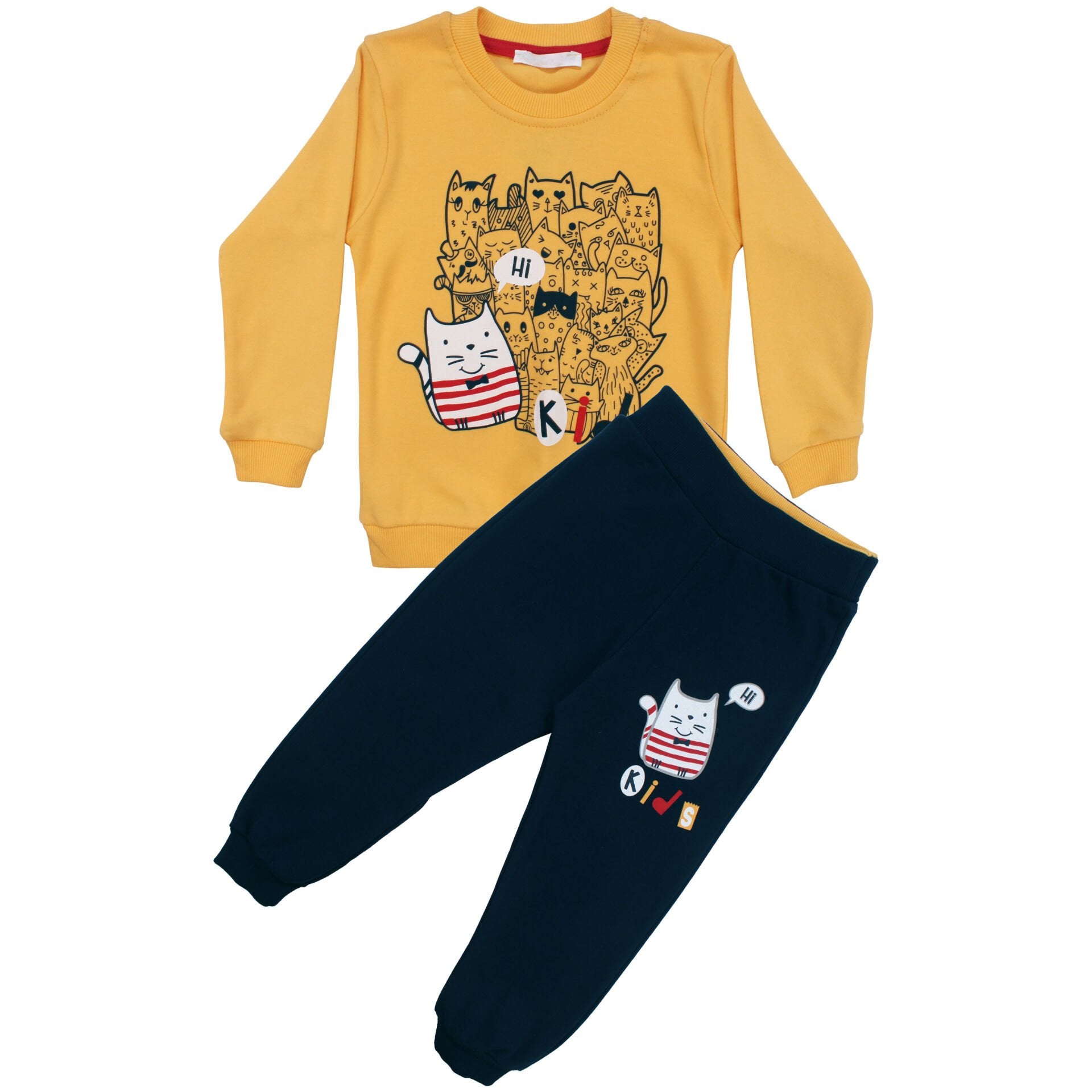 Erkek Çocuk Sarı Laci Papyonlu Kedi Baskılı 2'li Takım