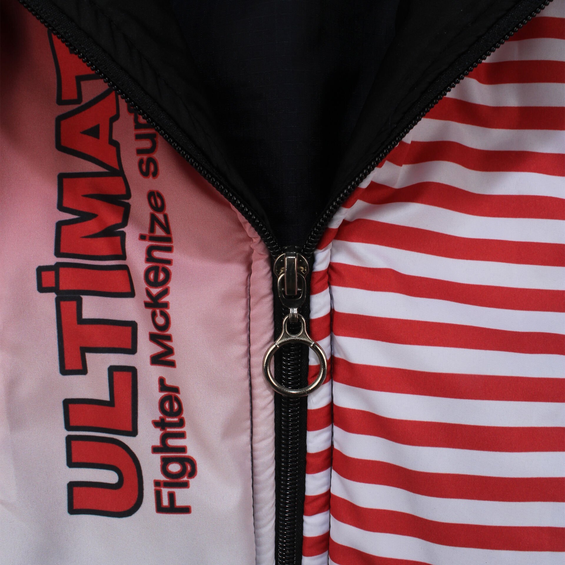 Erkek Çocuk Siyah Renkli Çizgili Ultimate Yazılı Kapşonlu Şisme Mont