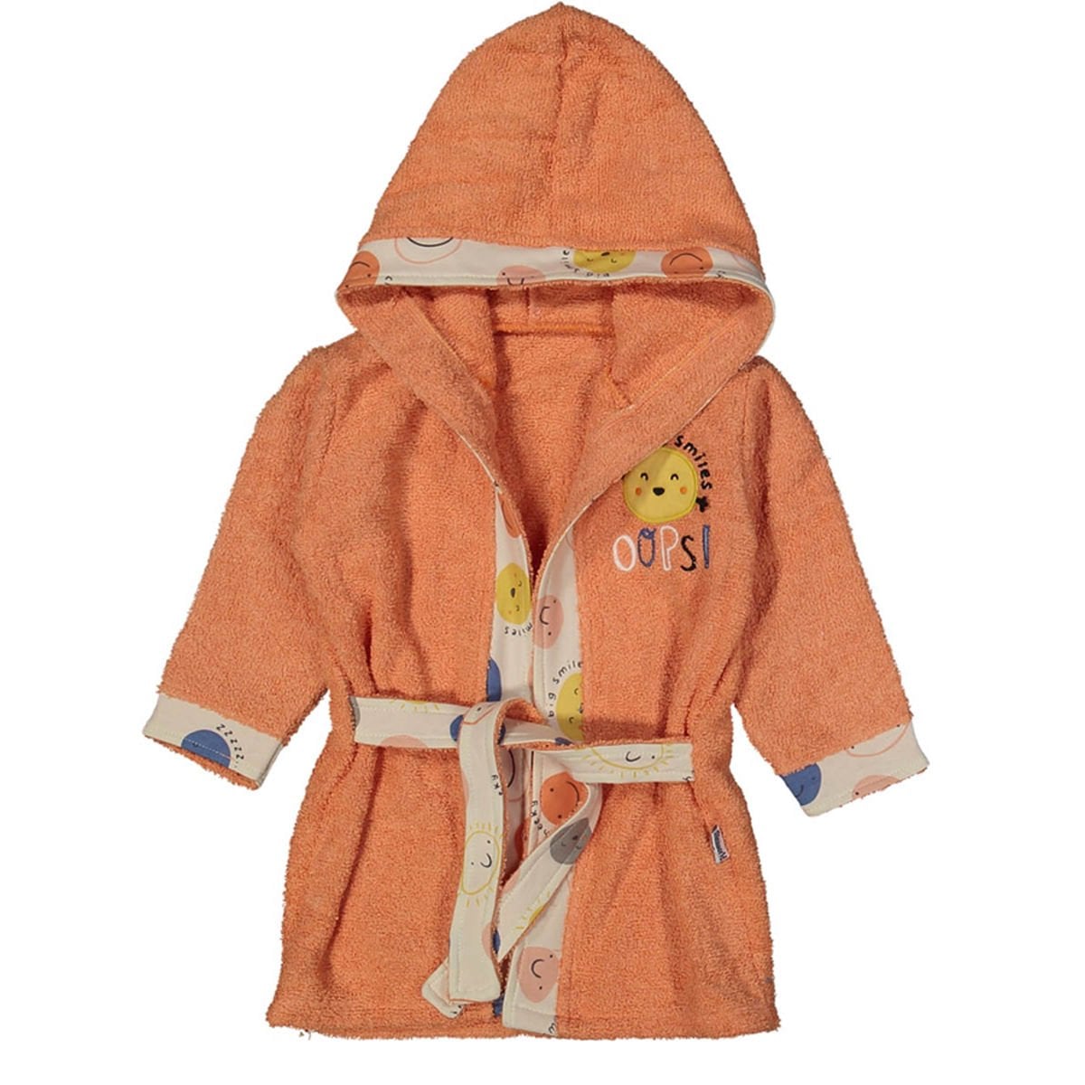 Erkek Çocuk Turuncu Emoji Desenli Ops Bornoz
