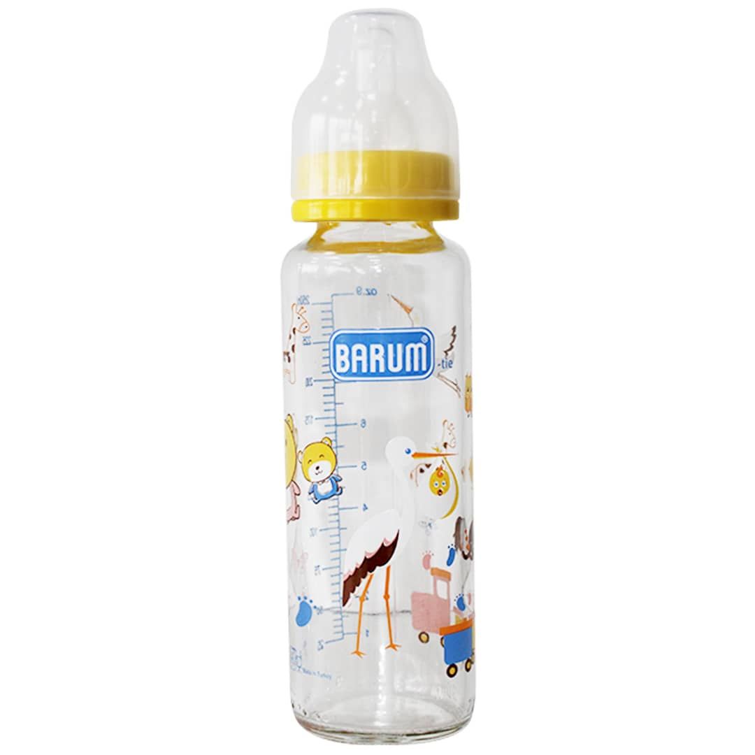 Hayvan Desenli Kiraz Uçlu Sarı Cam Biberon