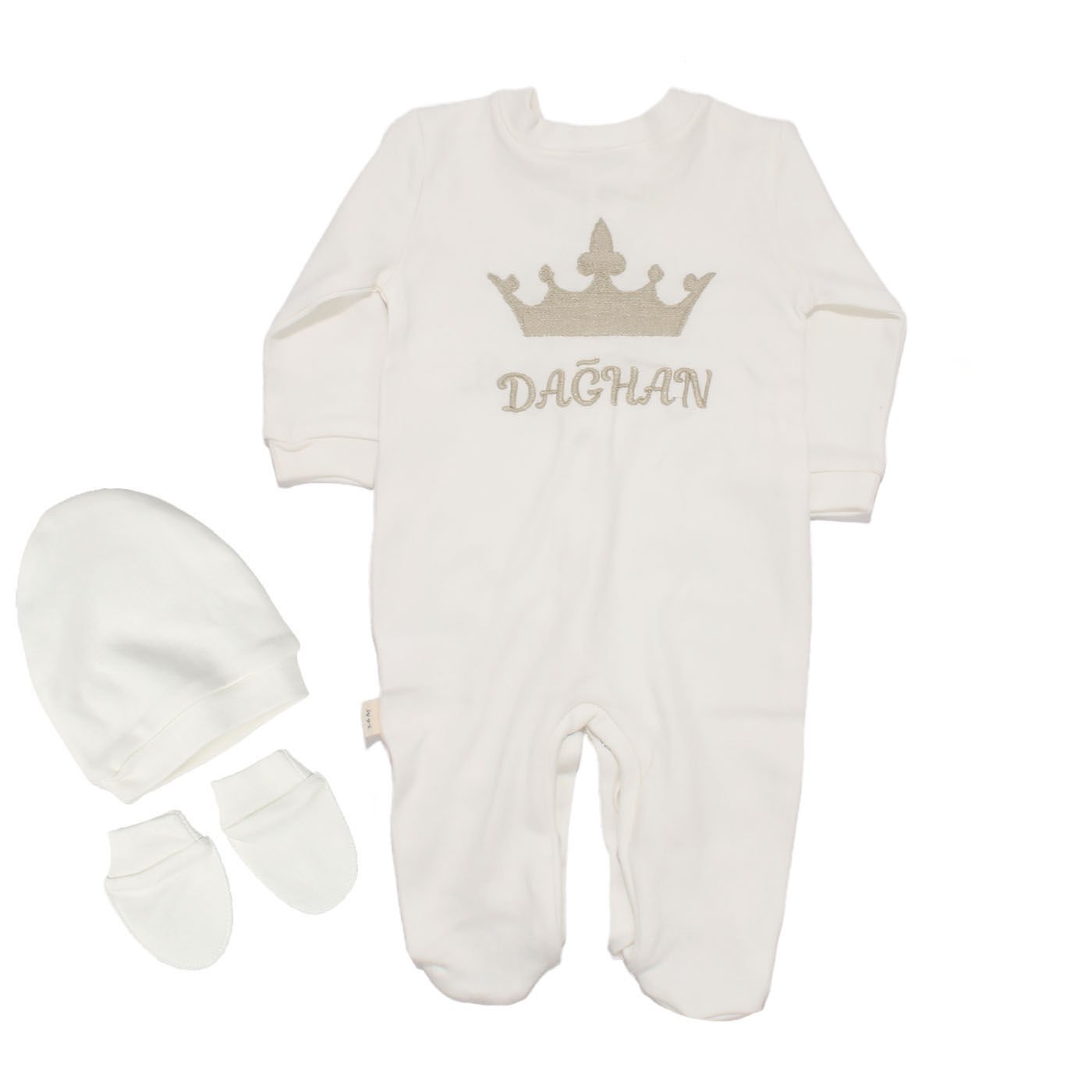 İsme Özel Kahve Taç Nakışlı Bereli Eldivenli Tulum
