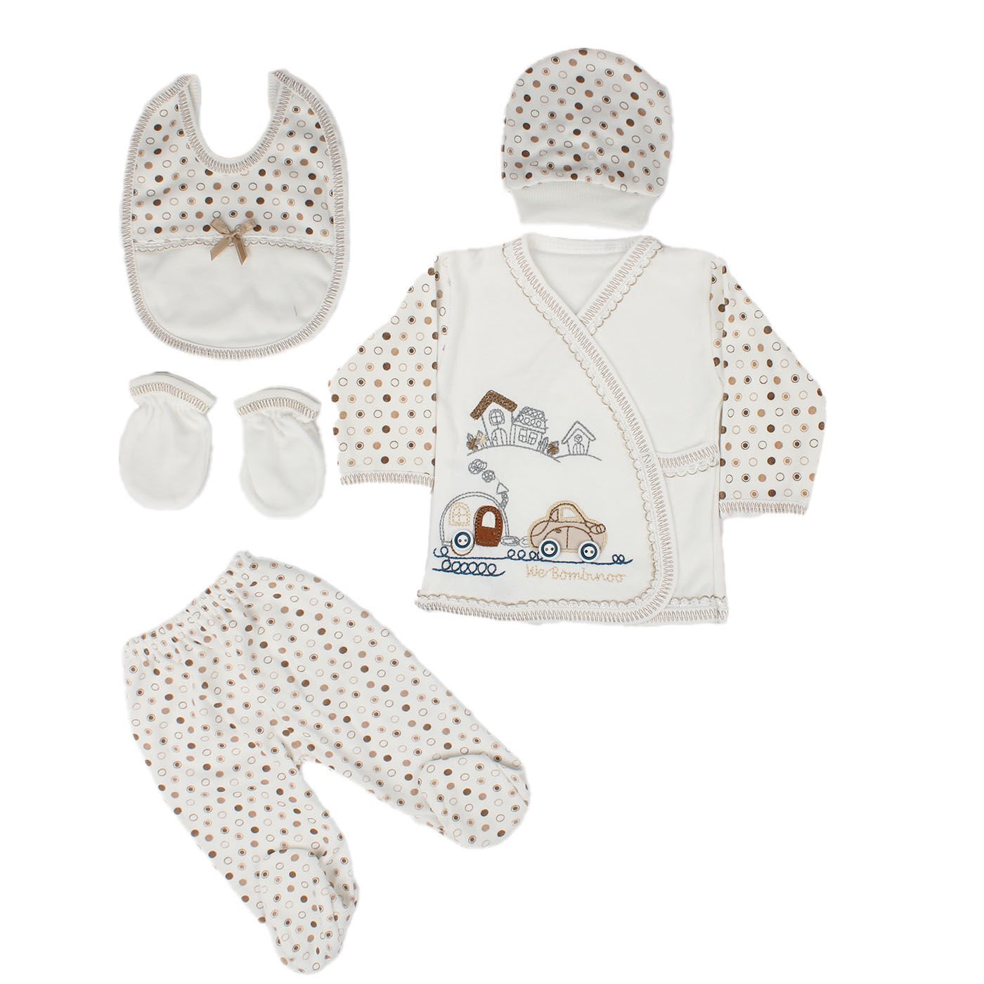 Kahverengi Arabalı Puanlı 5 Parça Hastane Çıkış Seti