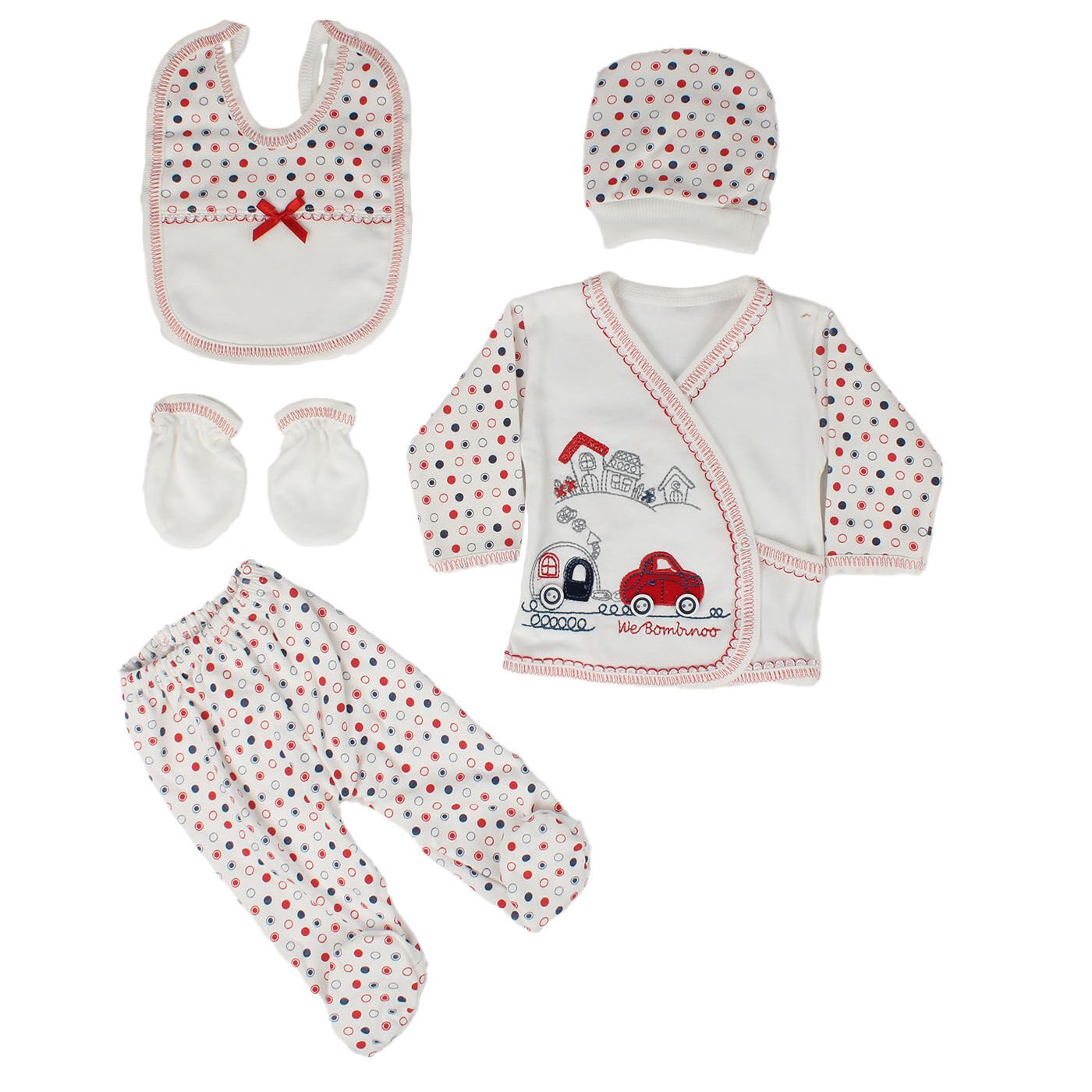 Kırmızı Arabalı Puanlı 5 Parça Hastane Çıkış Seti