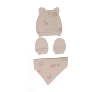 Kız Bebek Bej Balonlu Köpek Baskılı Düğmeli 5 Parça Hastane Çıkış Seti 0-3 Ay