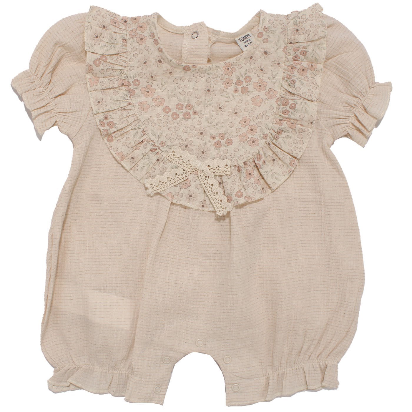 Kız Bebek Bej Çicek Desenli Yakası Fırfırlı Tulum