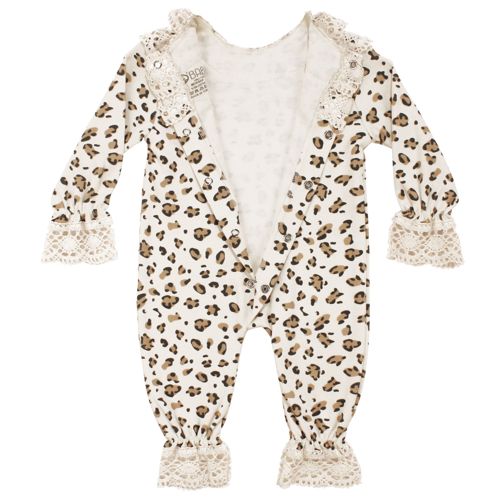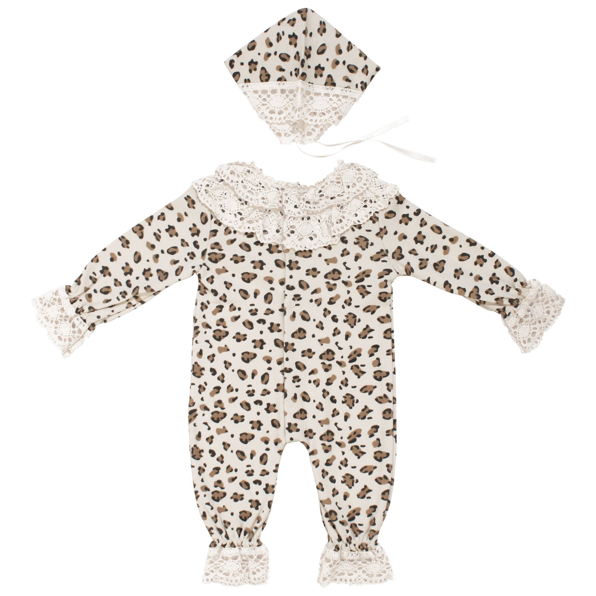 Kız Bebek Beyaz Kahve Leopar Desenli Bereli Fistolu Tulum