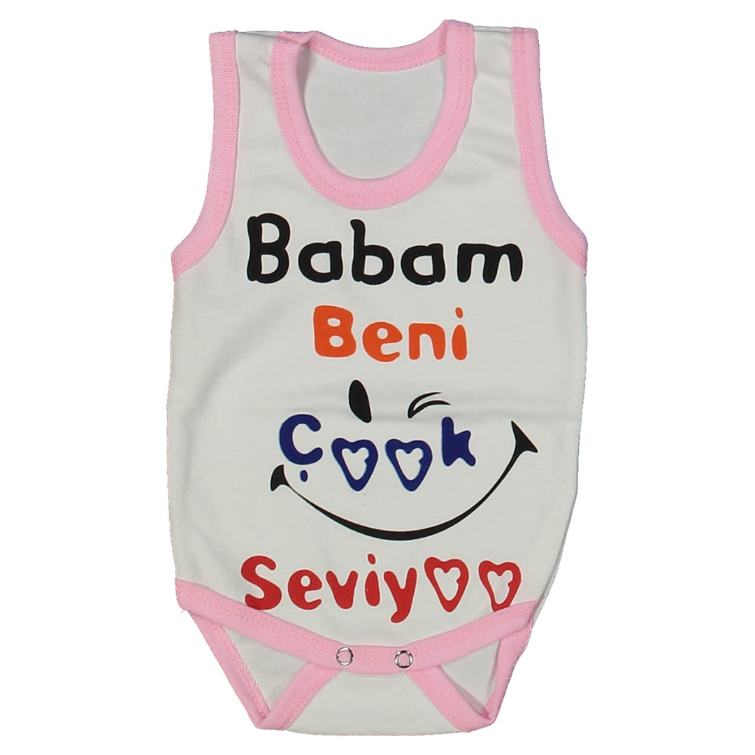 Kız Bebek Beyaz Pembe Biyeli Babam Beni Seviyor Yazılı Askılı Zıbın