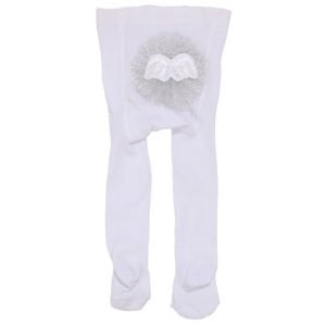 Kız Bebek Beyaz Simli Tüllü Fiyonklu Külotlu Çorap 0-6 Ay