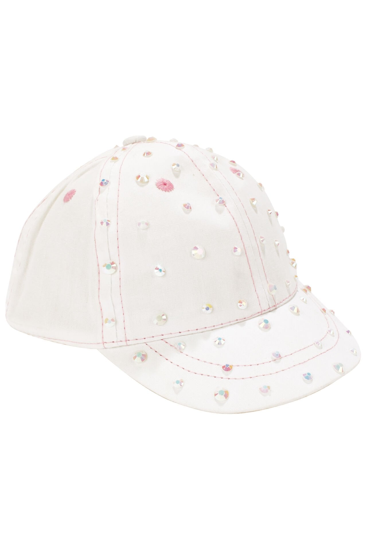 Kız Bebek Beyaz Taş İşlemeli Kasket Şapka 0-18 Ay