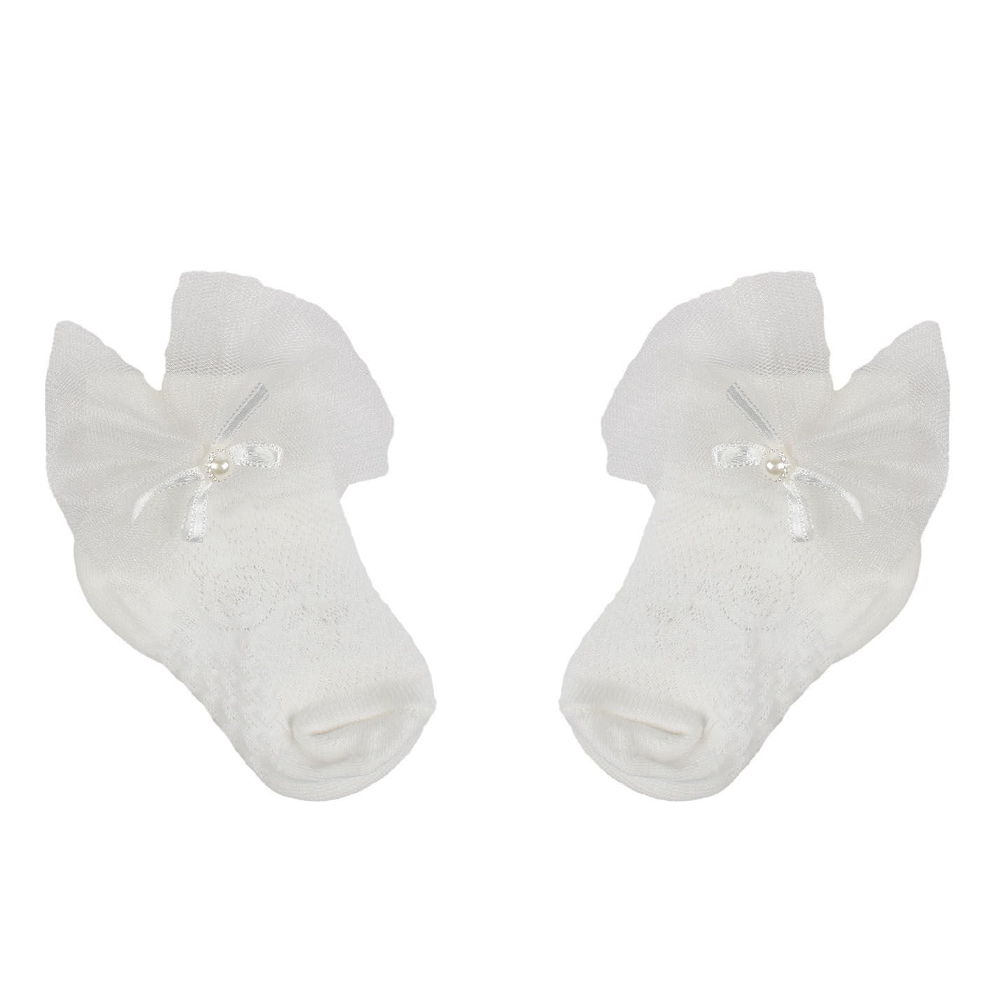 Kız Bebek Beyaz Tüllü Boncuklu Çorap 0-6 Ay