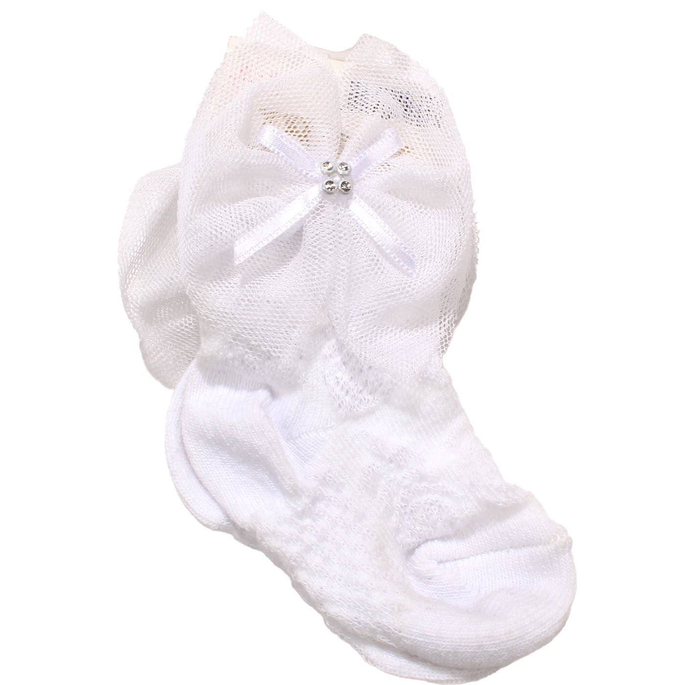 Kız Bebek Beyaz Tüllü Kurdelalı Çorap 0-6 Ay