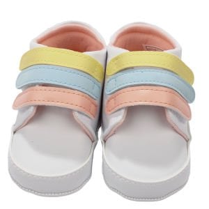 Kız Bebek Beyaz Turuncu Mavi Cırtlı Arkası Gökkuşağı Deri Ayakkabı