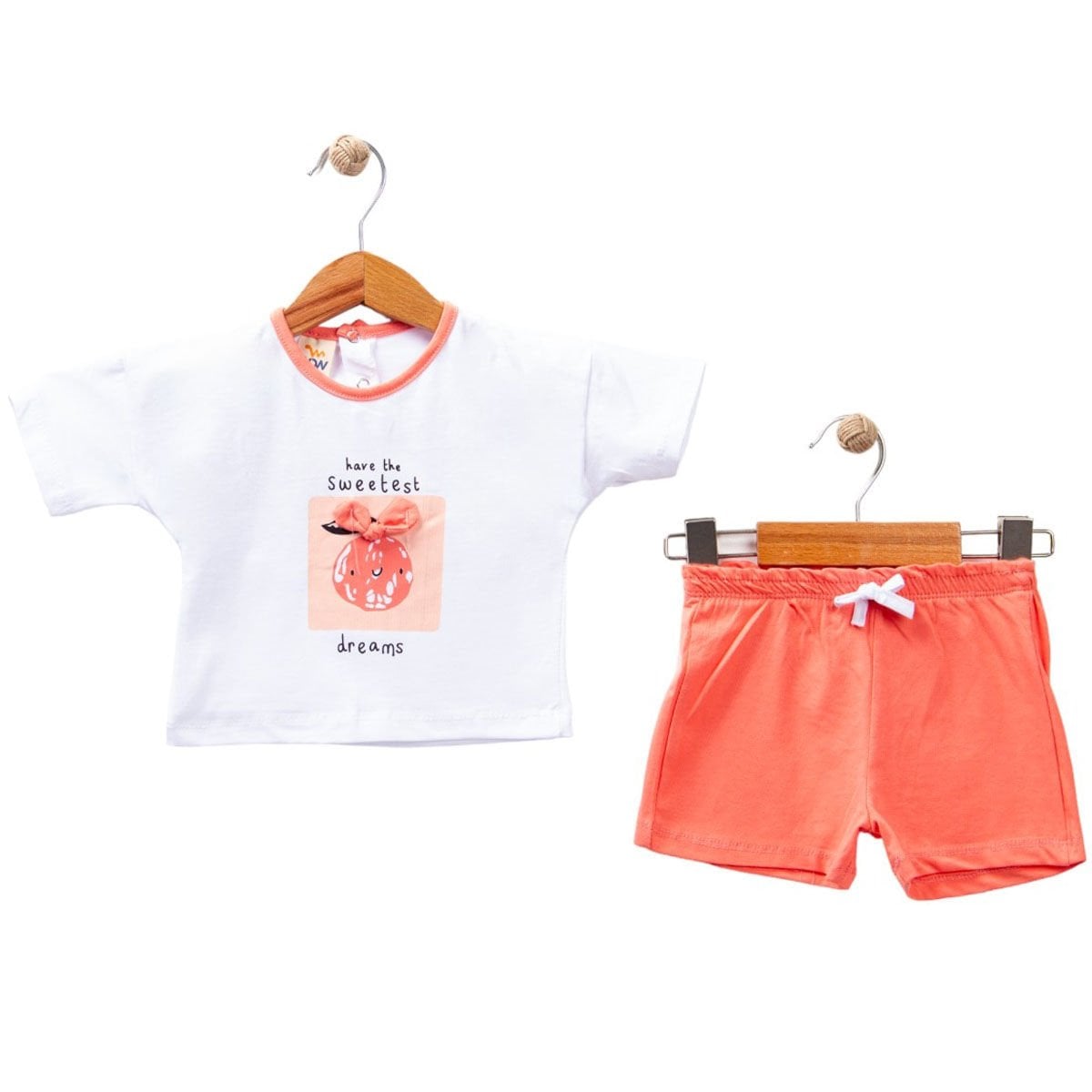 Kız Bebek Beyaz Turuncu Sweetest Yazılı Baskılı Şortlu 2'li Takım