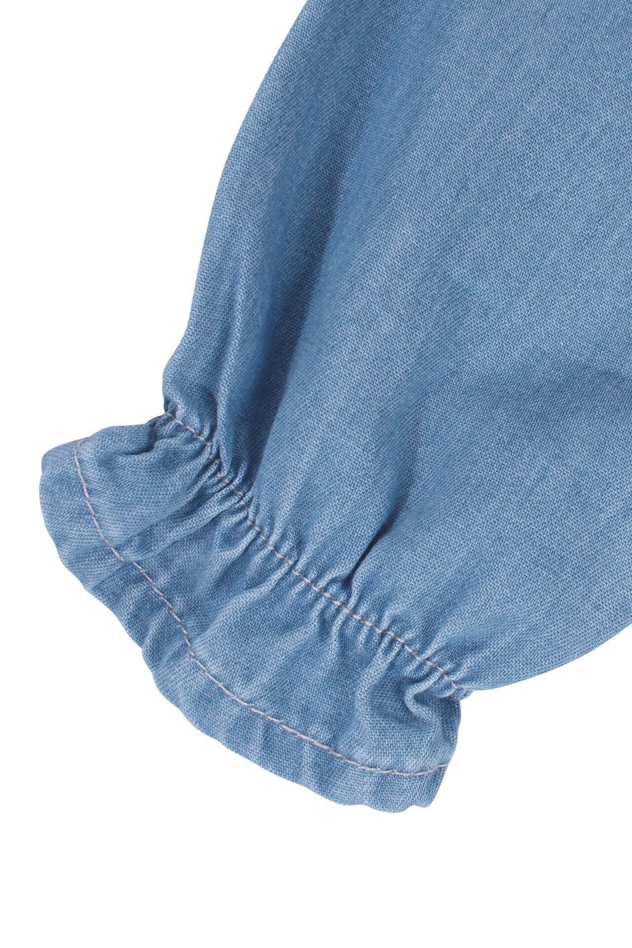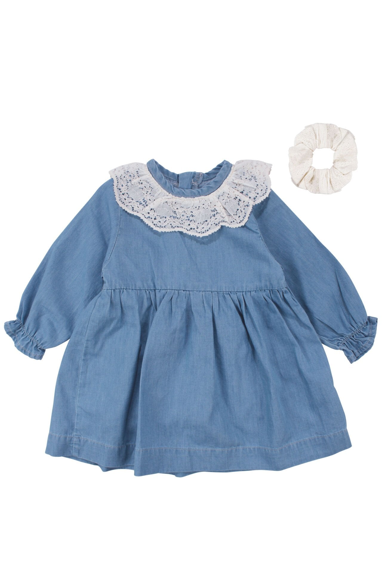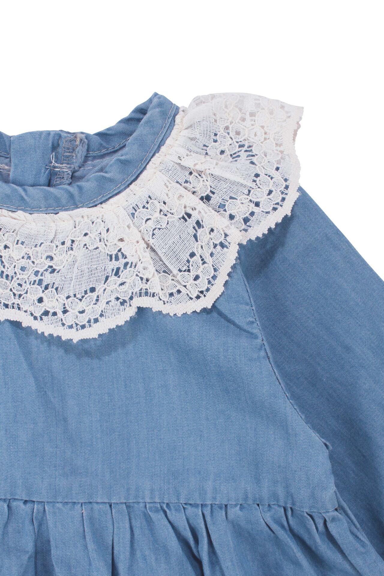 Kız Bebek Ekru Dantel Yakalı Tokalı Kot Elbise
