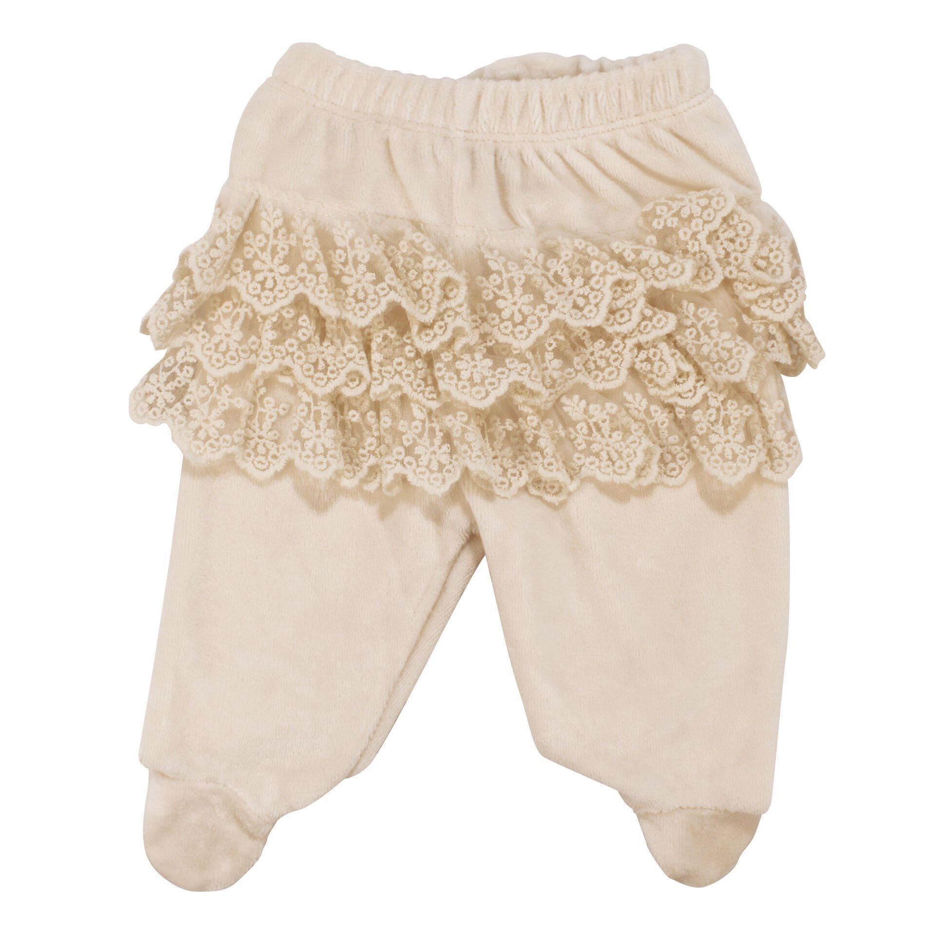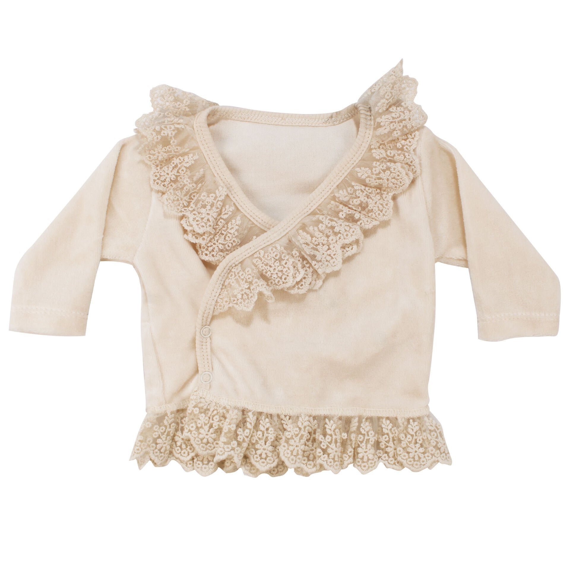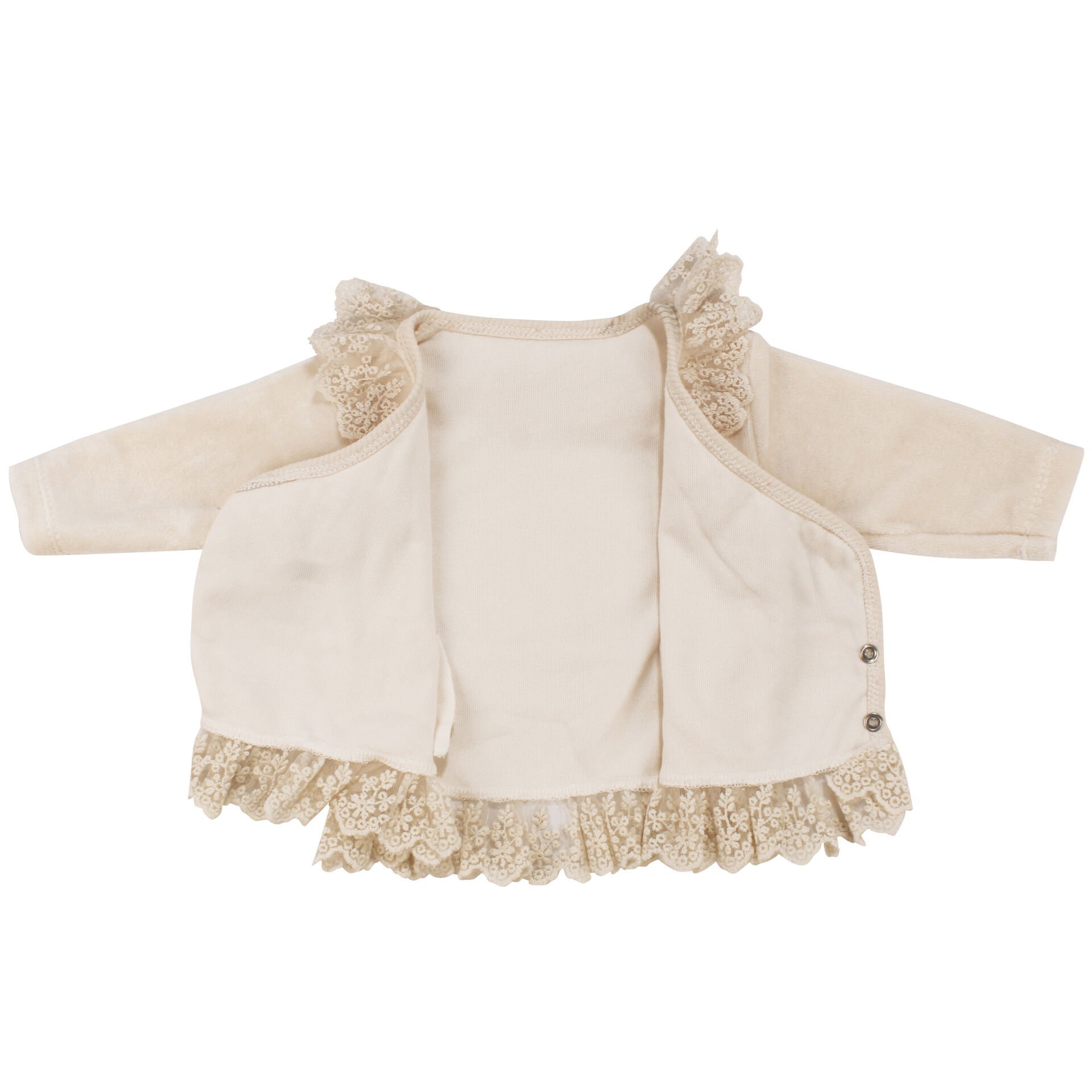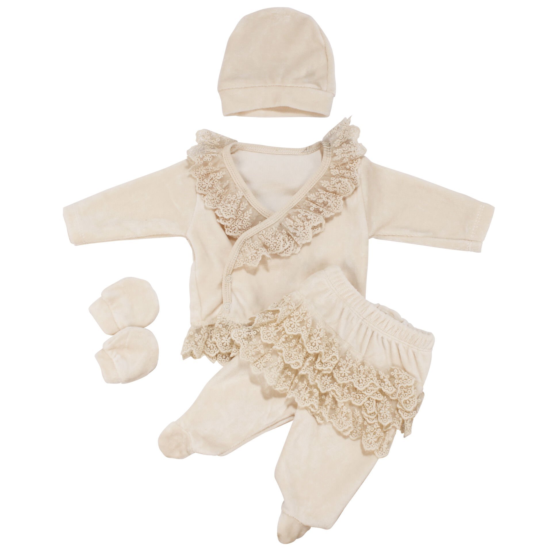 Kız Bebek Ekru Dantelli Kadife Beş Parça Hastane Çıkış Seti
