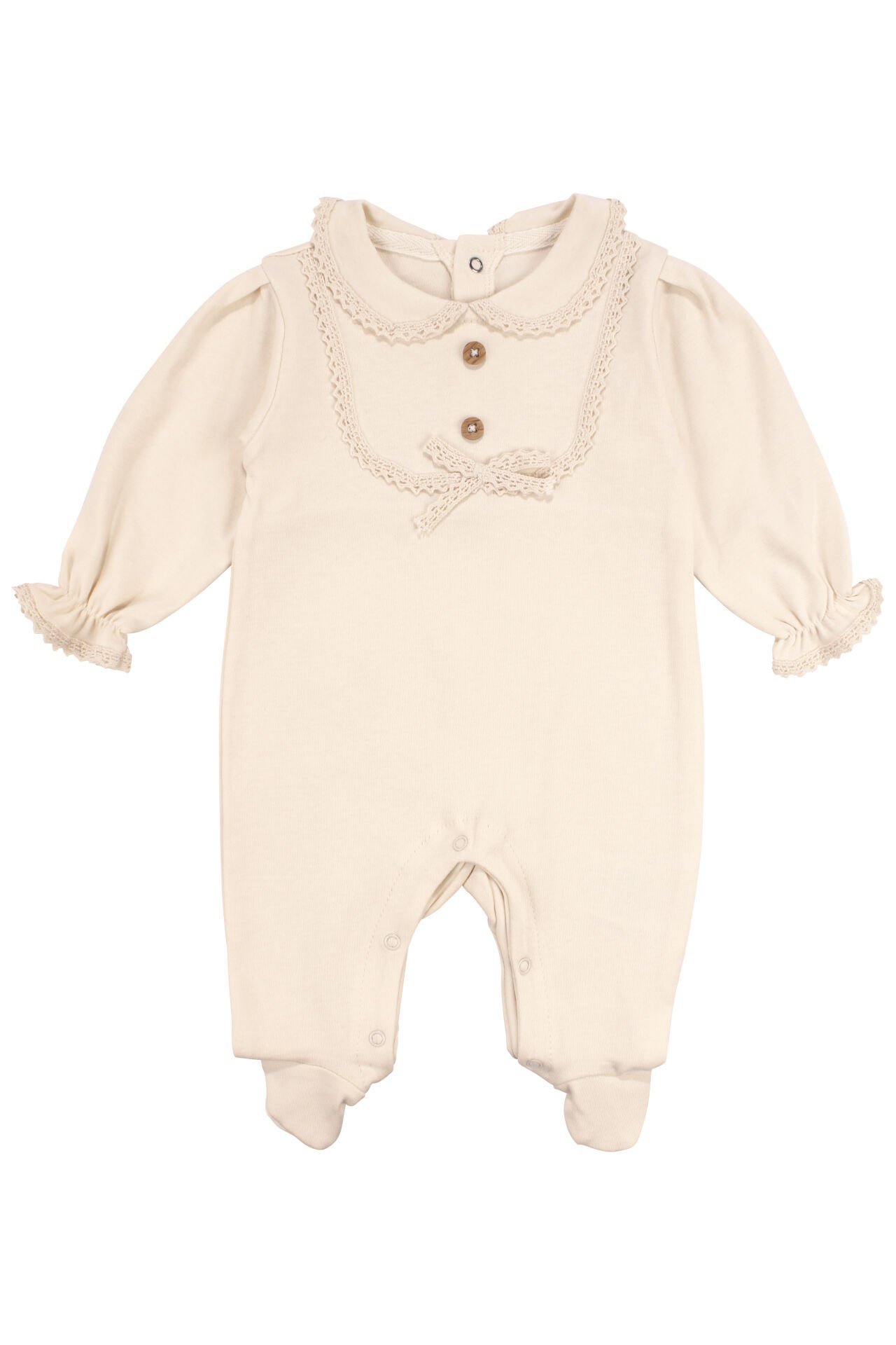 Kız Bebek Ekru Fistolu Yakalı Düğmeli Patikli Tulum