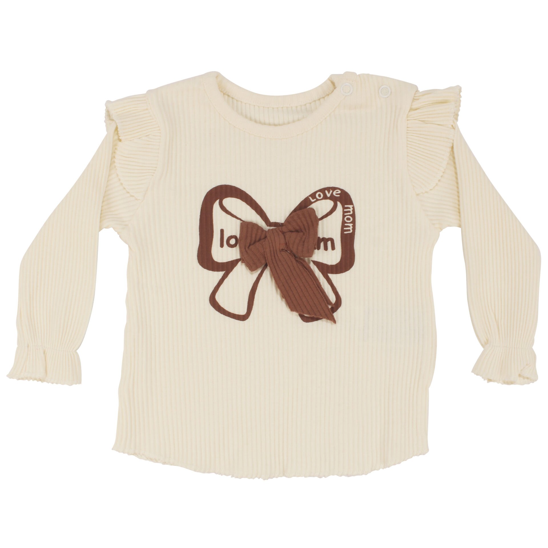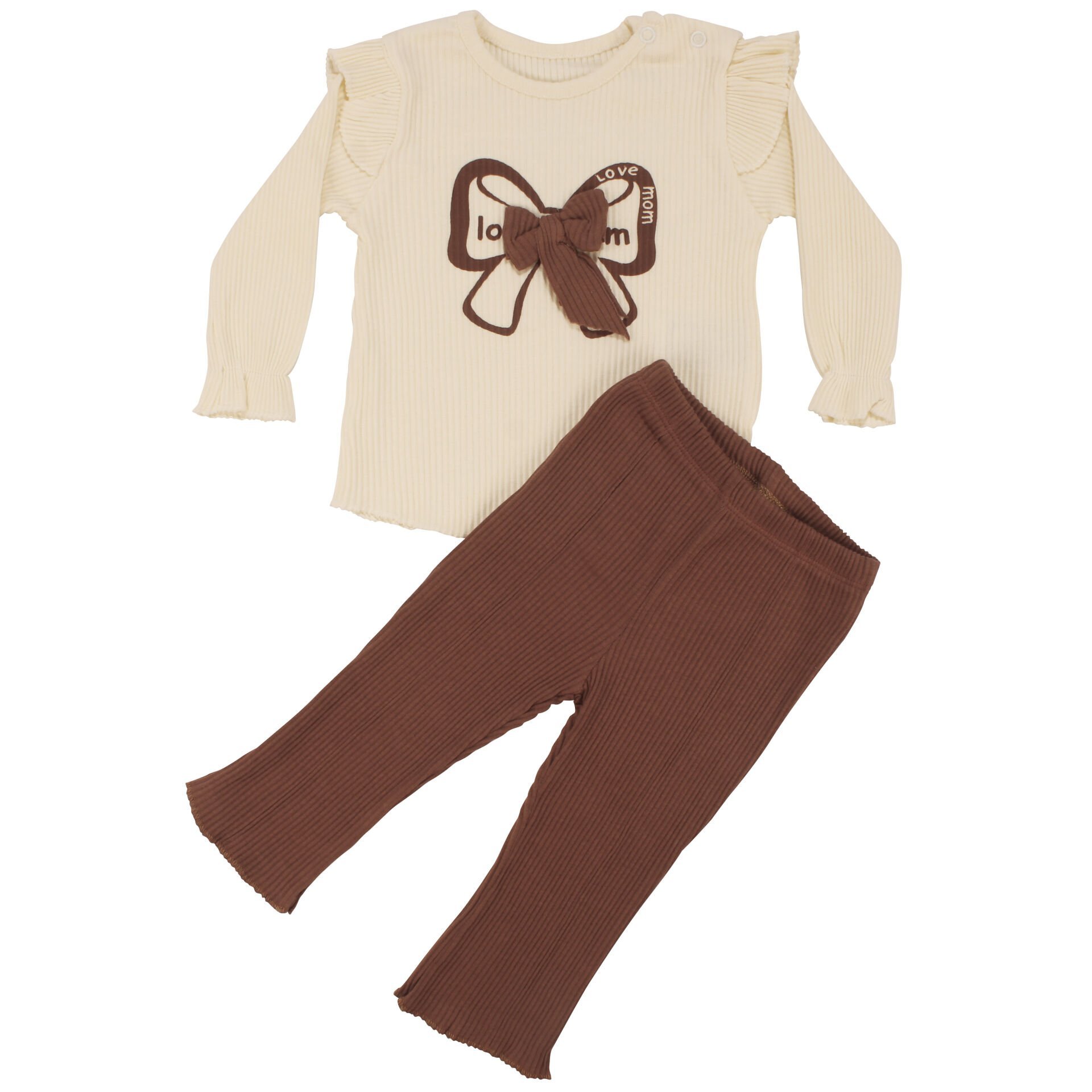 Kız Bebek Ekru Kahve Fiyonklu Fitillli 2'li Takım