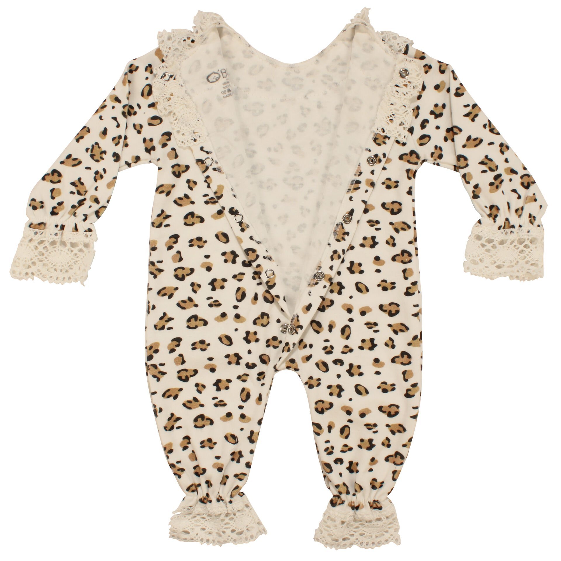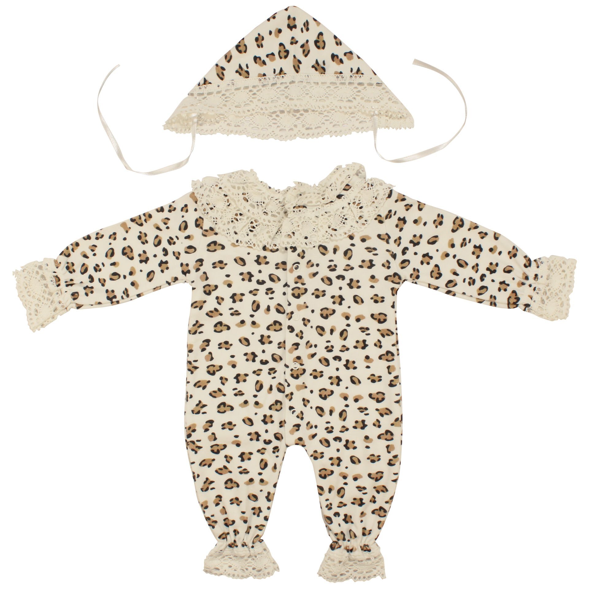 Kız Bebek Ekru Kahve Leopar Desenli Bereli Fistolu Tulum