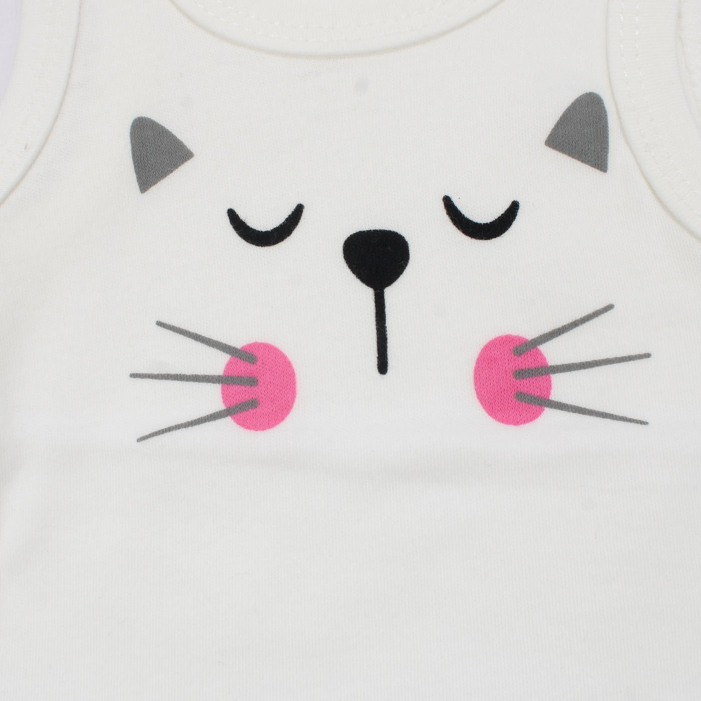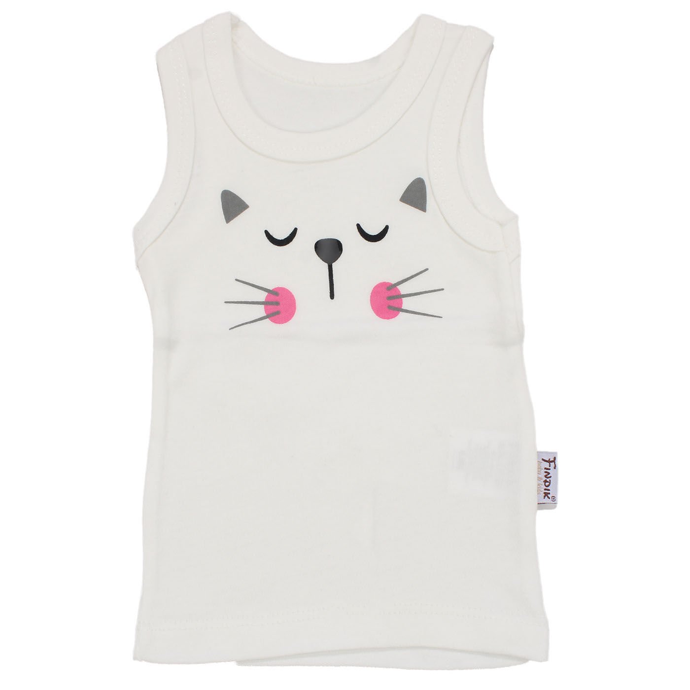Kız Bebek Ekru Kedi Yüz Baskılı Atlet 3-6 Ay