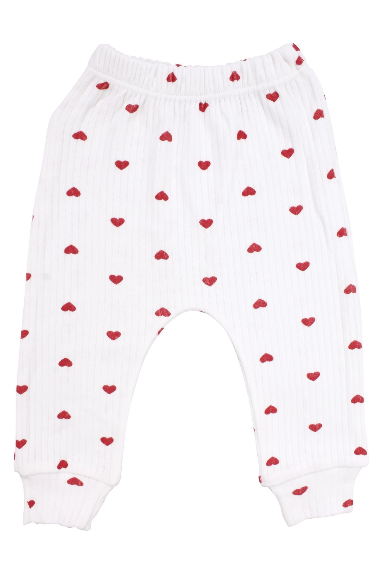 Ekru zemin üzerine kırmızı kalp desenleriyle tasarlanan bu zıbın takım, uyumlu parçalarıyla bütünlüklü bir görünüm sunar. Kalp desenleri ürüne hareketli ve dengeli bir tasarım kazandırırken, fiyonk detayı görsel bütünlüğü tamamlayan şık bir unsur olarak öne çıkar. Bereli yapısı, takımın genel tasarım diliyle uyumlu şekilde hazırlanarak tek bir stil algısı oluşturur.