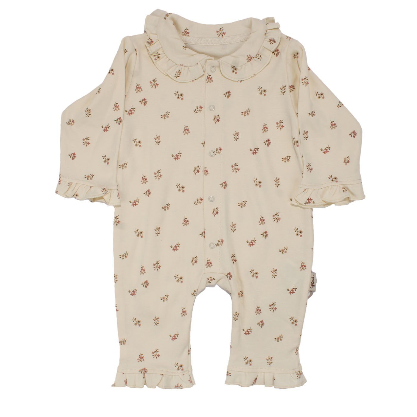 Kız Bebek Ekru Minik Çicekli Kolları Fırfırlı Bebe Yaka Çıtçıtlı Tulum