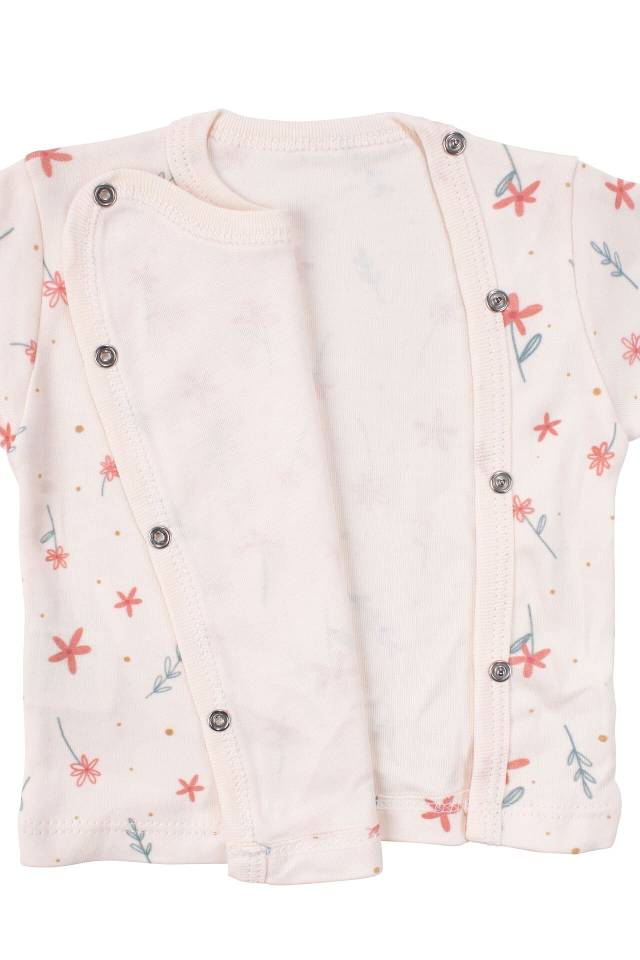 Kız Bebek Ekru Pembe Çiçek Desenli Çıtçıtlı Bereli 3'lü Takım 0-3 Ay